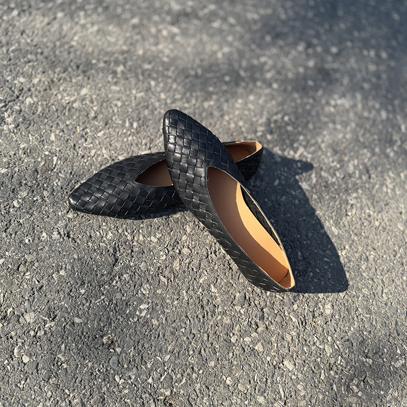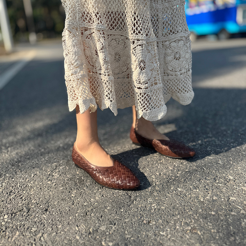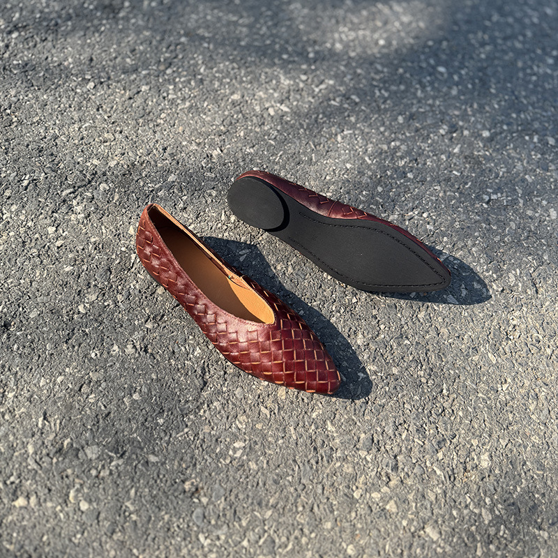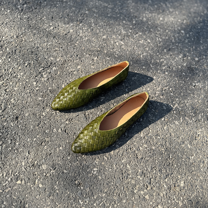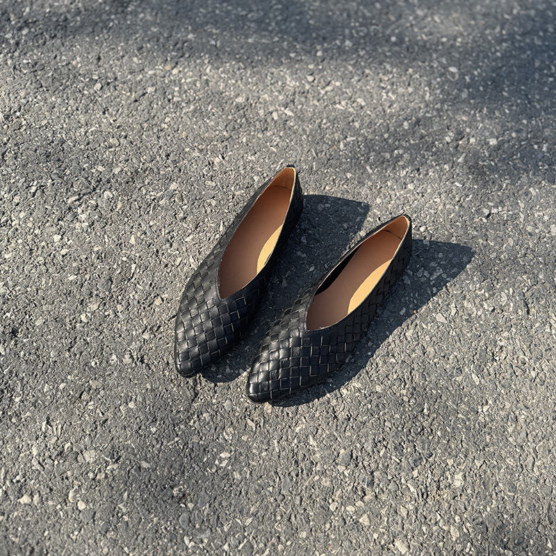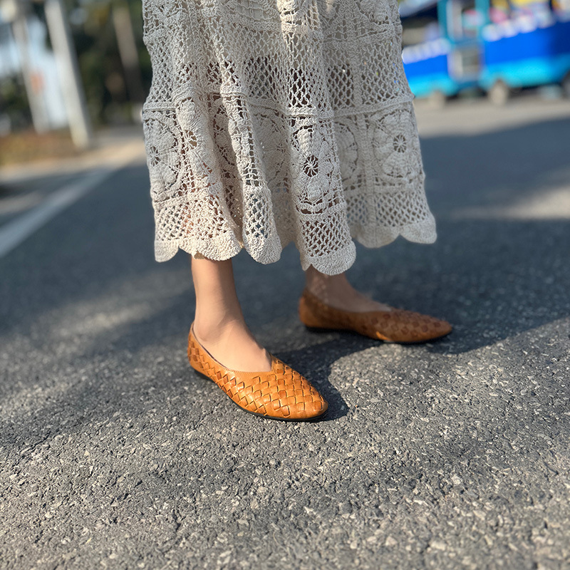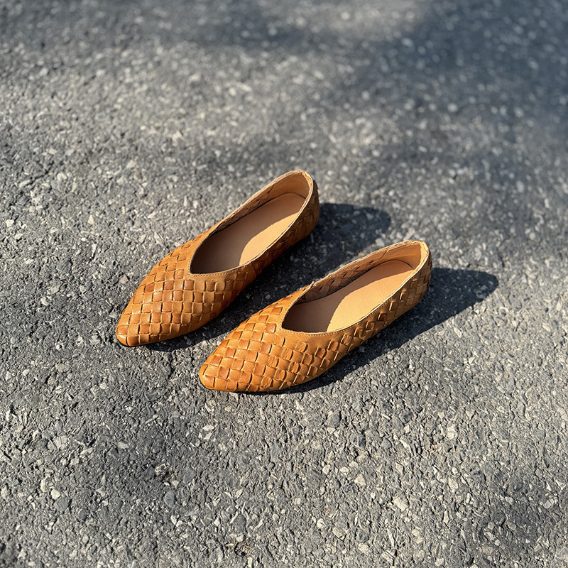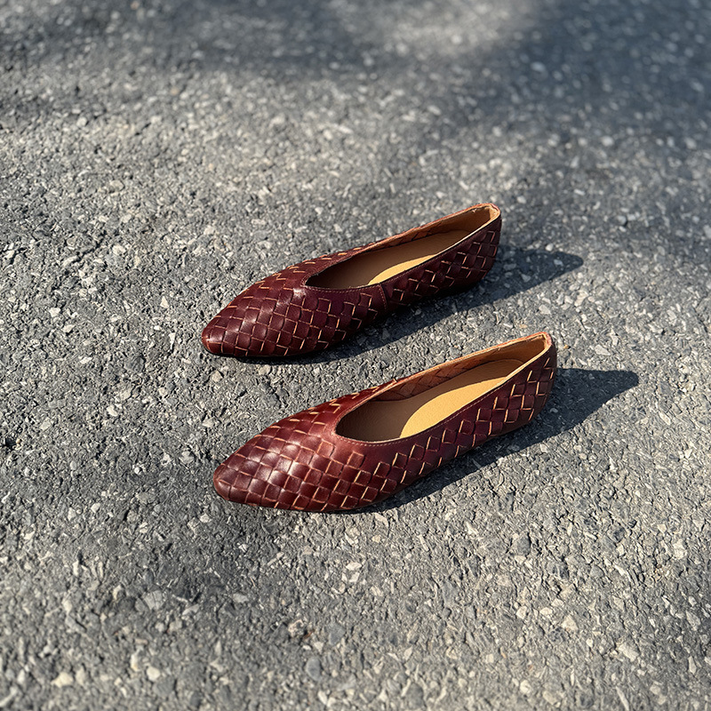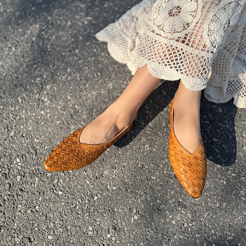 c3118-35 새로운 스타일의 멋진 영국풍 수제 뾰족코 브레이드 V자형 구두, 부드러운 밑창 플랫 슈즈 여성용
