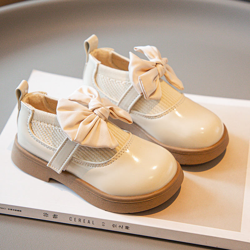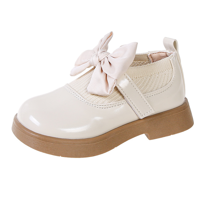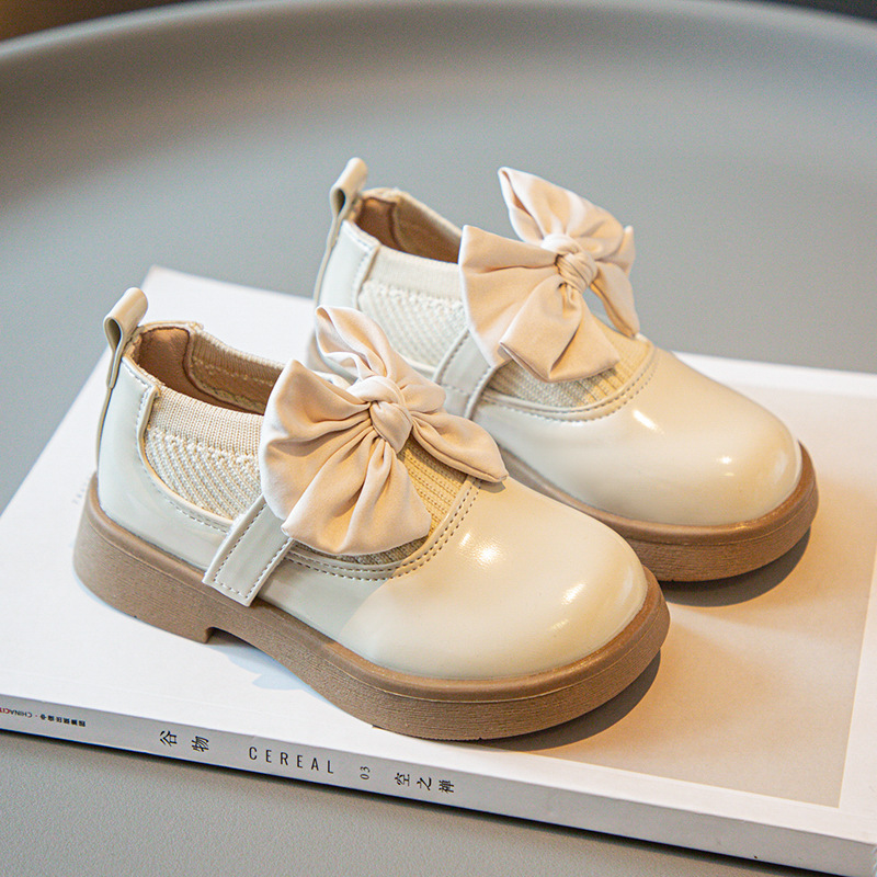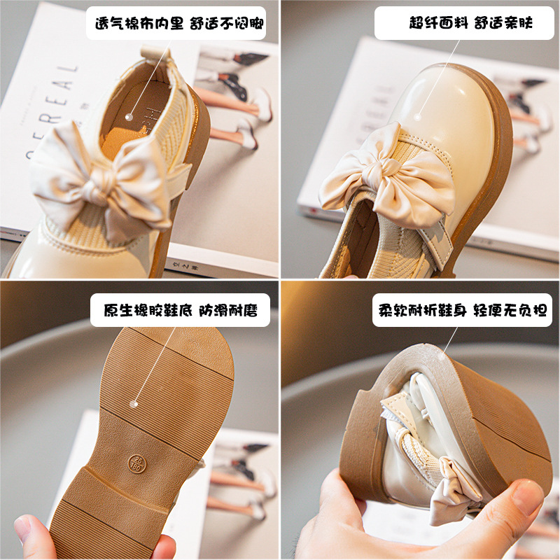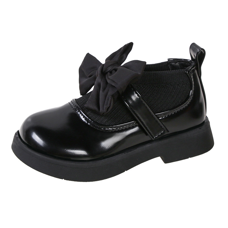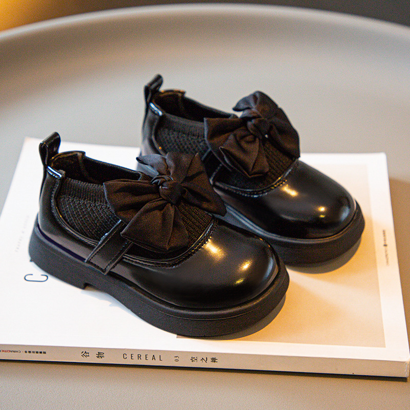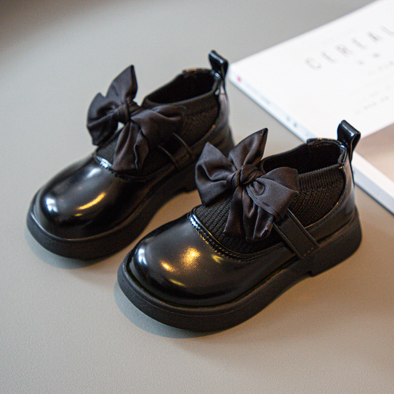 소녀의 활 작은 가죽 신발 새 코튼 부츠 소녀의 부드러운 솔 세련된 싱글 레이어 신발 작고 큰 어린이 신발 학생 신발스토어 가기