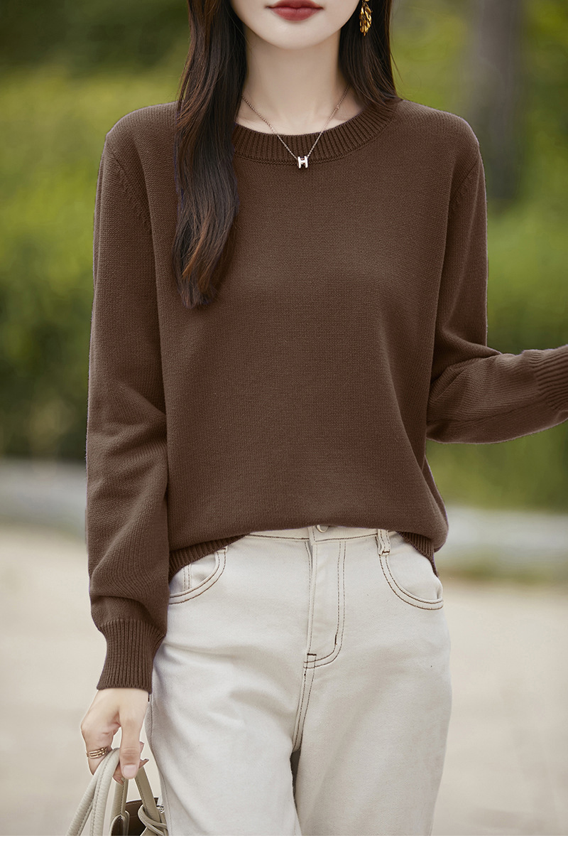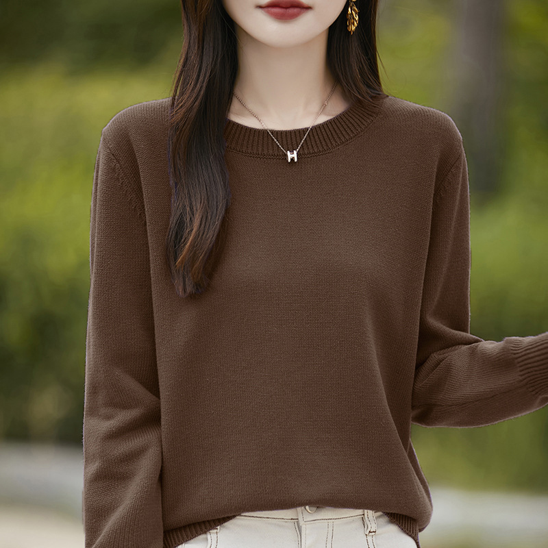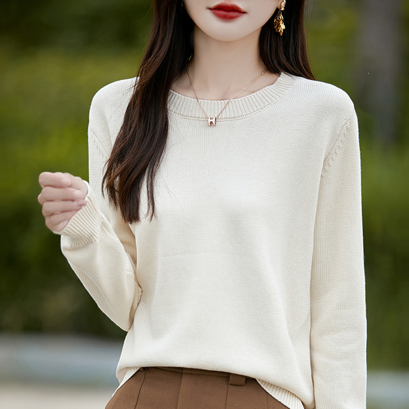 코튼 크루 넥 두꺼운 스웨터 여성의 가을과 겨울 새로운 풀오버 느슨한 슬림 니트 베이스 셔츠 여성용 최고 도매스토어 가기