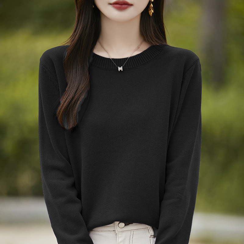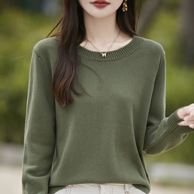 코튼 크루 넥 두꺼운 스웨터 여성의 가을과 겨울 새로운 풀오버 느슨한 슬림 니트 베이스 셔츠 여성용 최고 도매