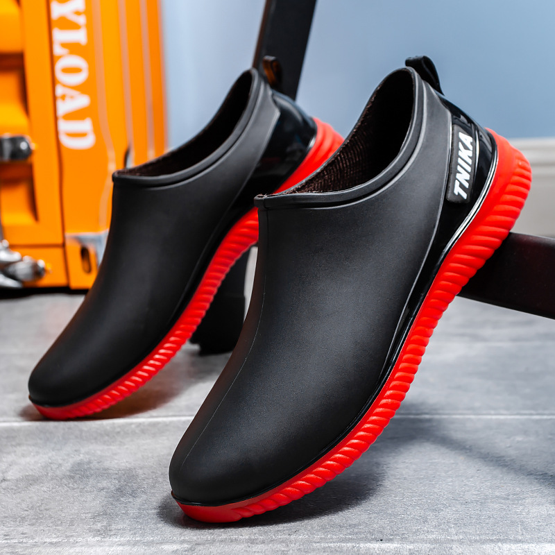 남성용 레인 부츠 로우 탑 얕은 입 방수 신발 따뜻한 원피스 코튼 레인 부츠 작업 주방 오버 슈즈 내마모성 고무 신발 도매스토어 가기
