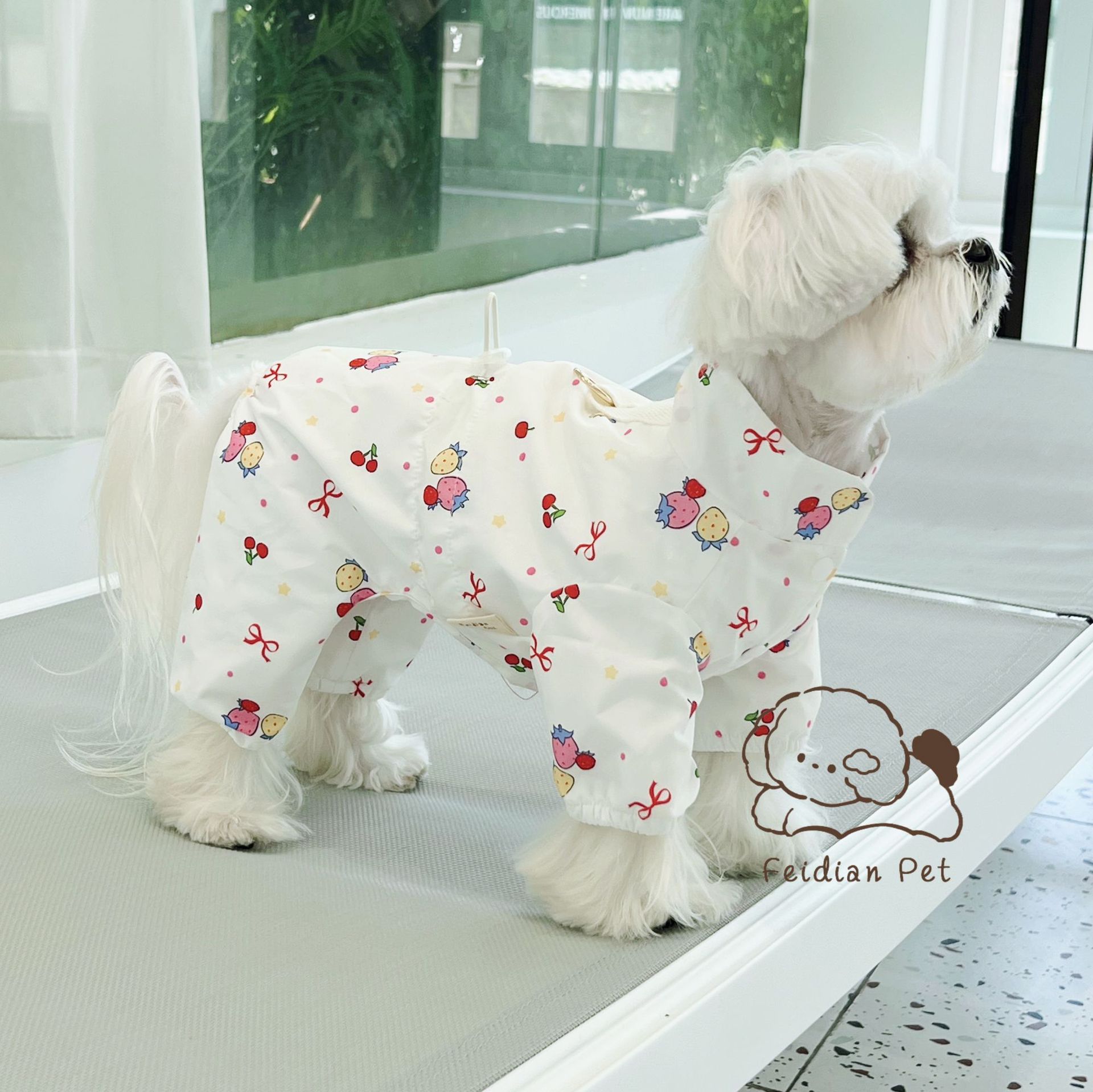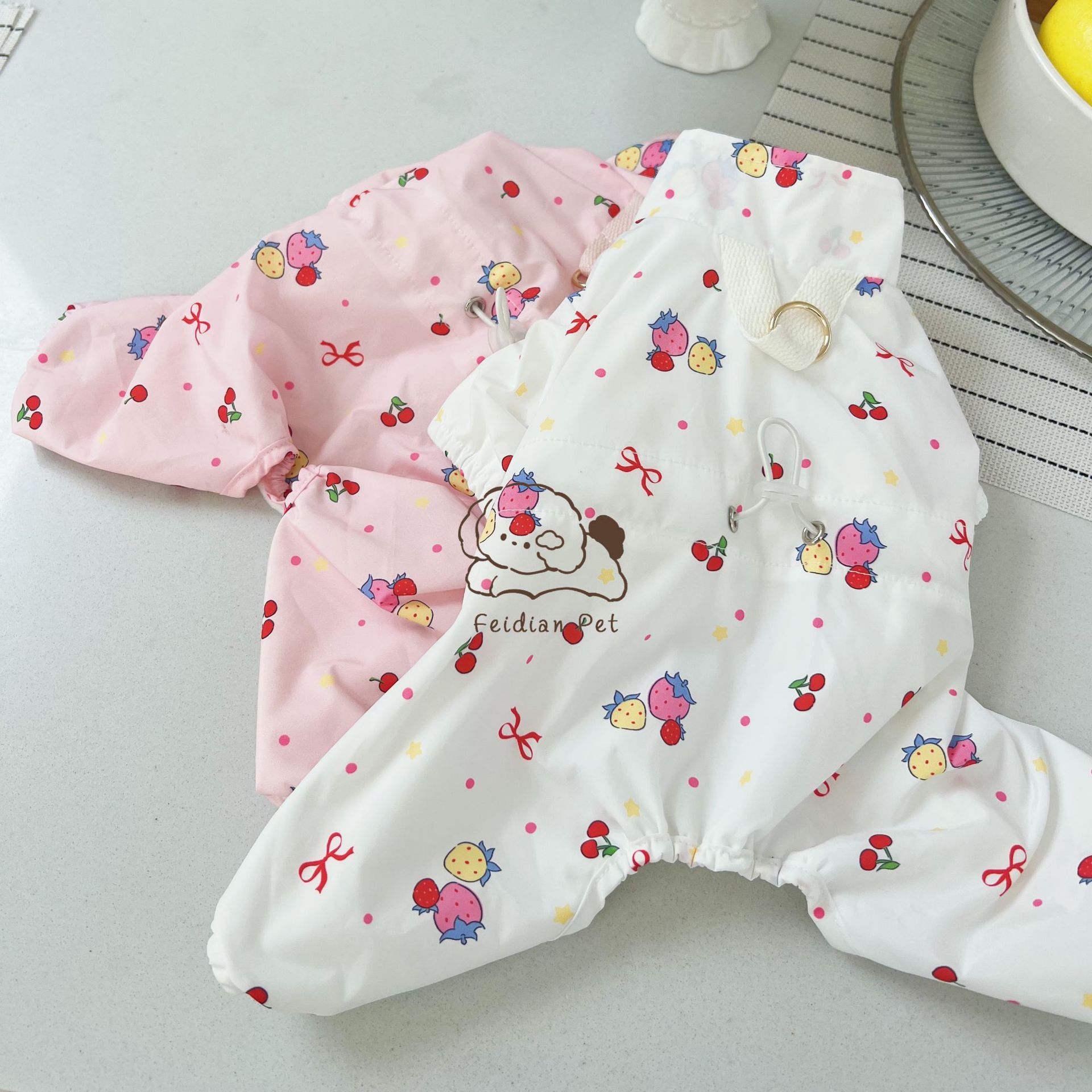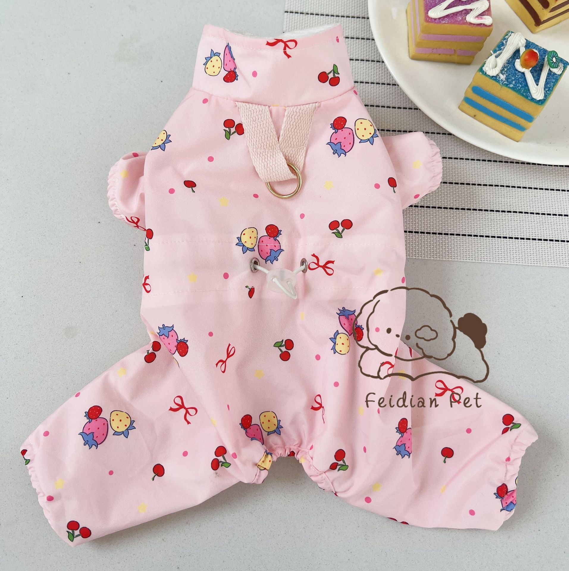 끓는 포인트 애완 동물 가을과 겨울 새 기모 네 다리 튀는 안티 액션 버클 비옷 작은 개 고양이 복장 개 걷기 의류스토어 가기