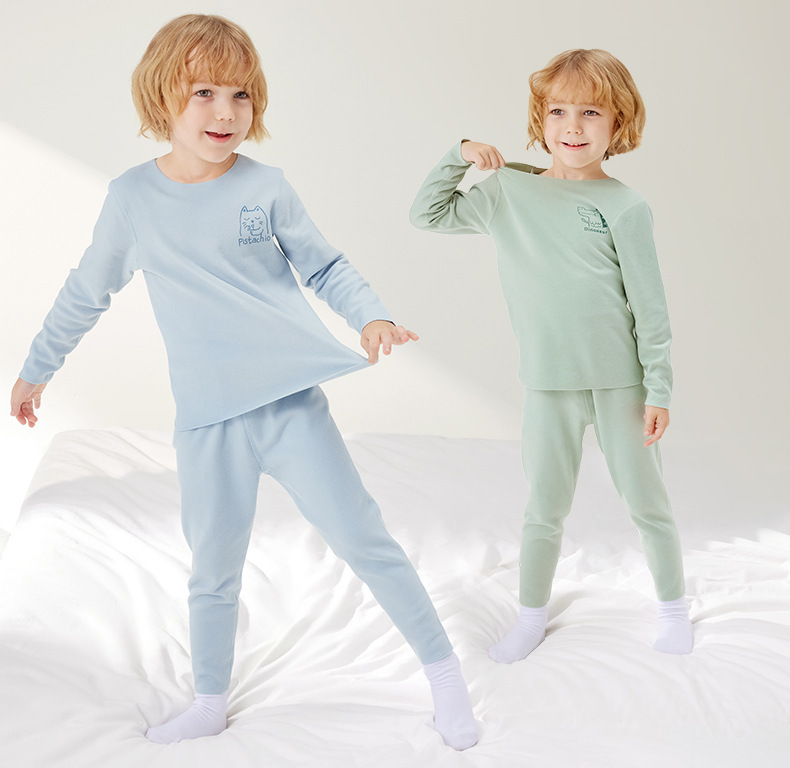 베티 오스 어린이 가을 옷과 바지 세트 벨벳 셀프 가열 열 속옷 소년 소녀 아기 잠옷