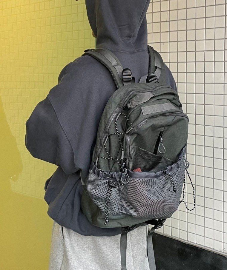 MRDONG 한국 신상 트렌디 남녀공용 대용량 야외 통기성 등산 가방 여행 메쉬 드로스트링 백팩스토어 가기