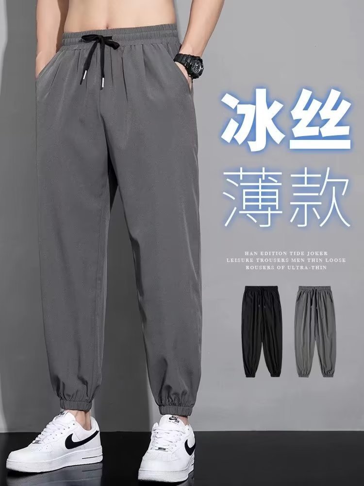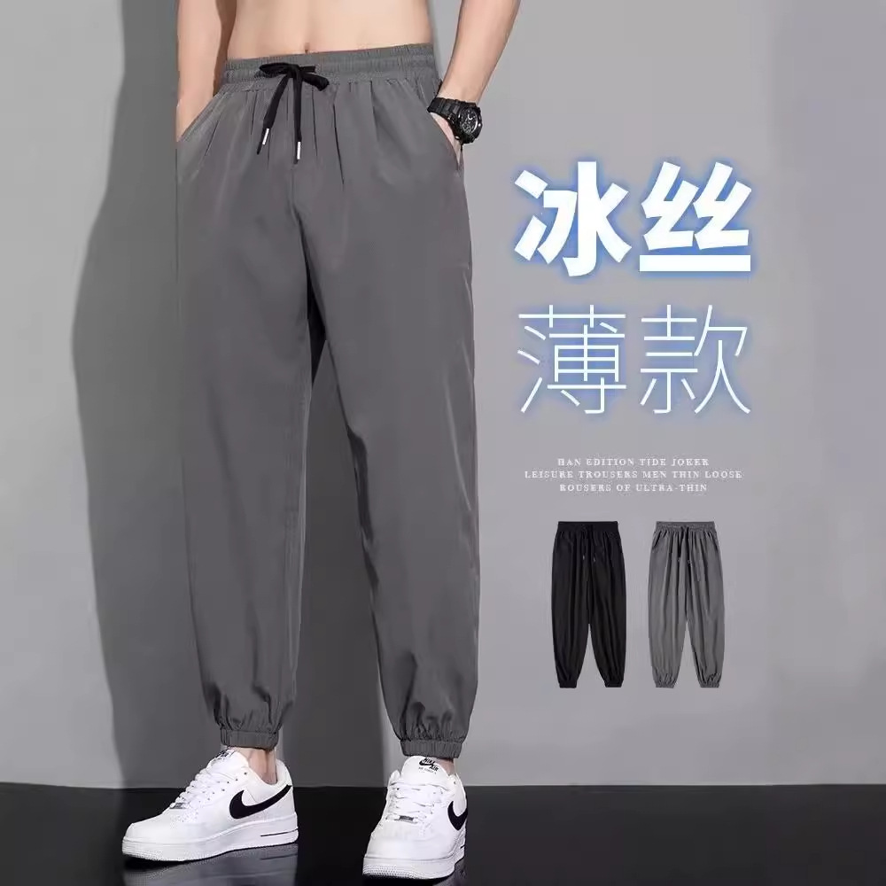 여름 얇은 스트레치 청바지 남성용 트렌디 브랜드 슬림 핏 발목 길이 바지스토어 가기