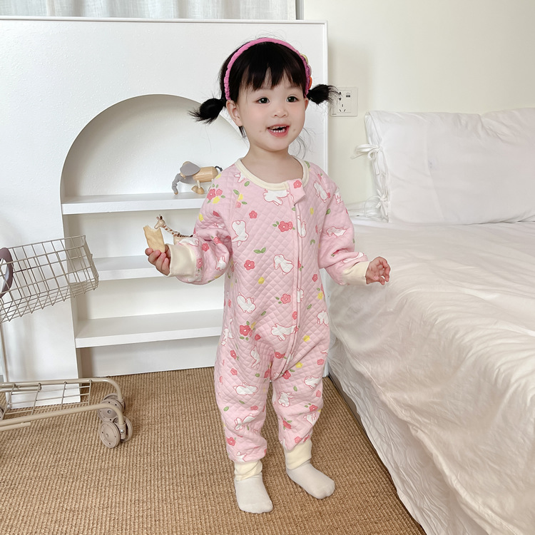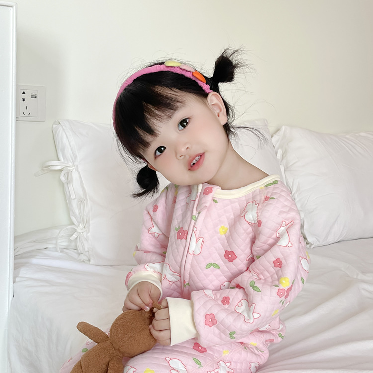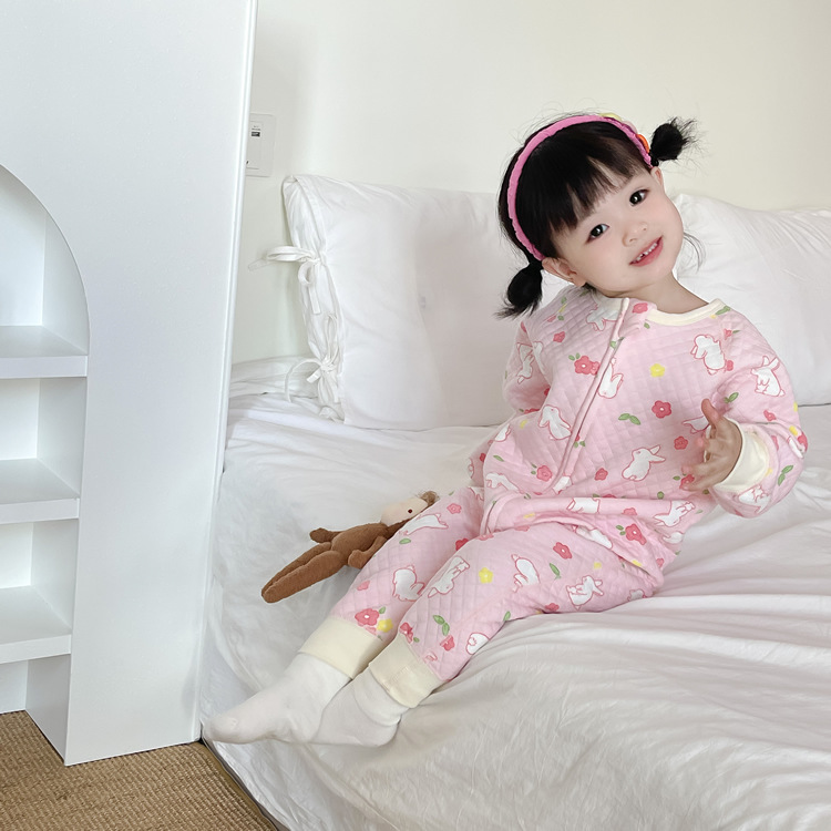• 핑크플라워래빗 긴팔 누빔침낭