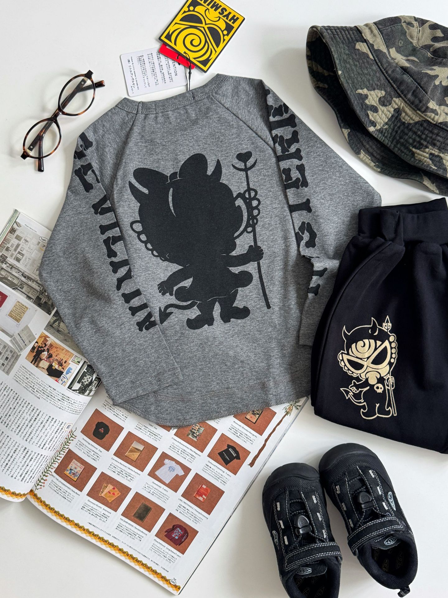 2024 새로운 블랙 슈퍼 조수 브랜드 젖꼭지 활 악마 라글란 긴팔 티셔츠 젖꼭지 어린이 최고 재고스토어 가기
