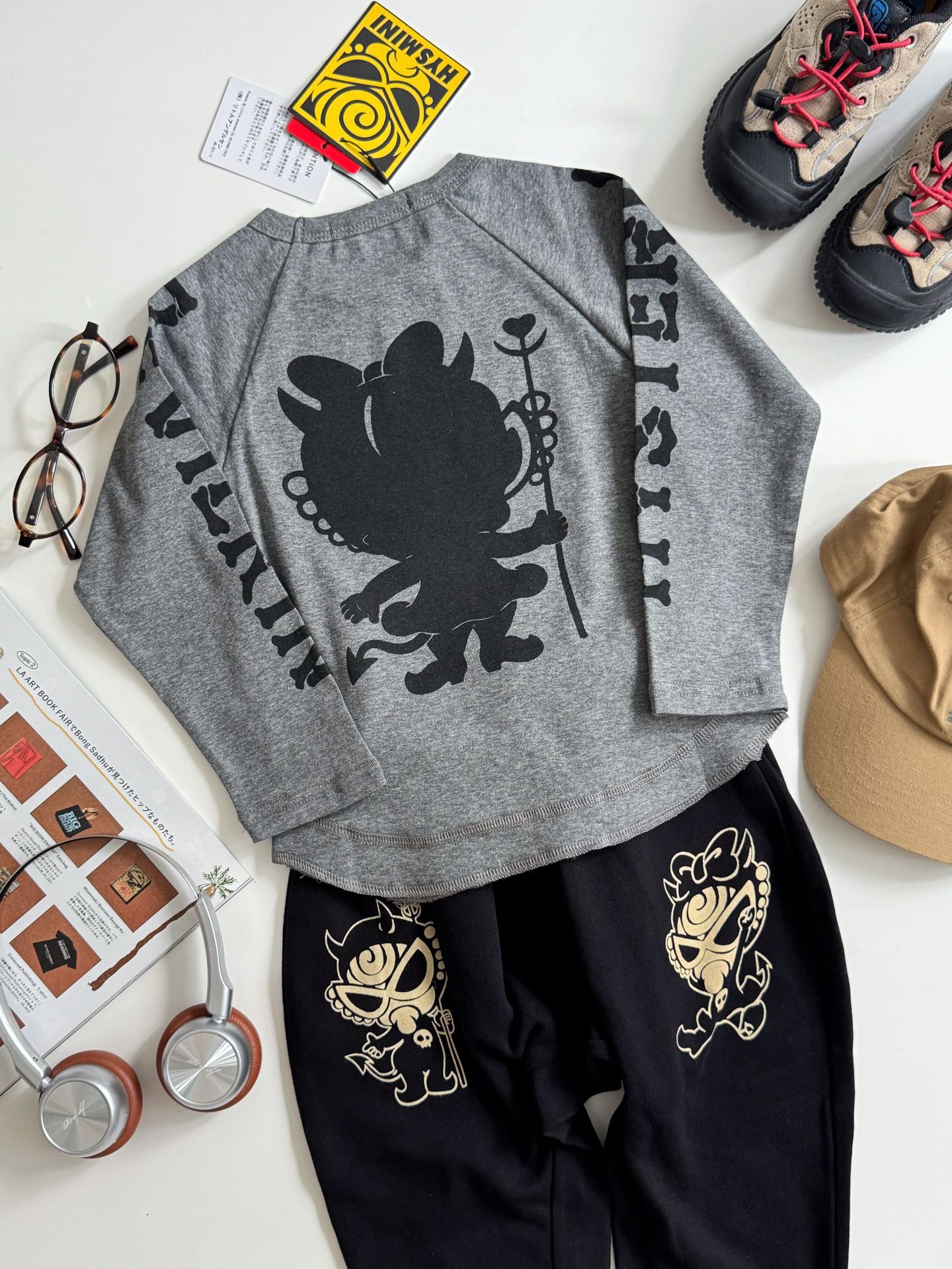 2024 새로운 블랙 슈퍼 조수 브랜드 젖꼭지 활 악마 라글란 긴팔 티셔츠 젖꼭지 어린이 최고 재고