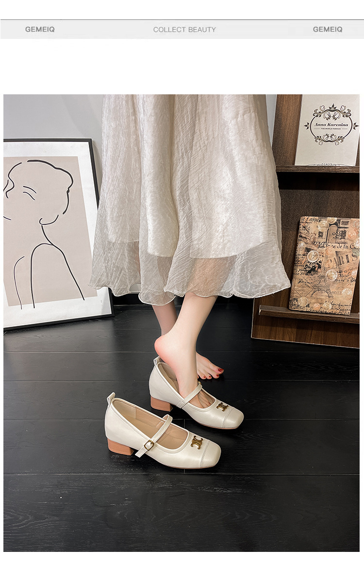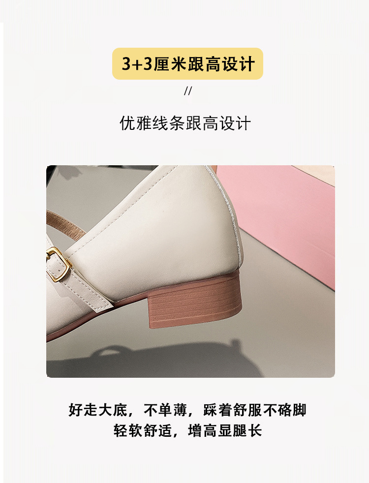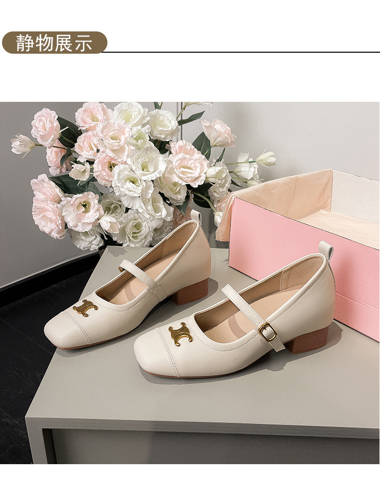 내부 높이 6cm 프랑스 기질 레트로 작은 가죽 신발 2024 새로운 광장 발가락 두꺼운 힐 통근 늦은 밤 바람 단일 레이어 신발스토어 가기