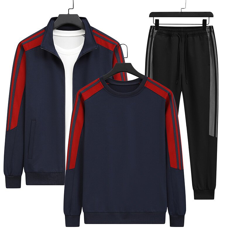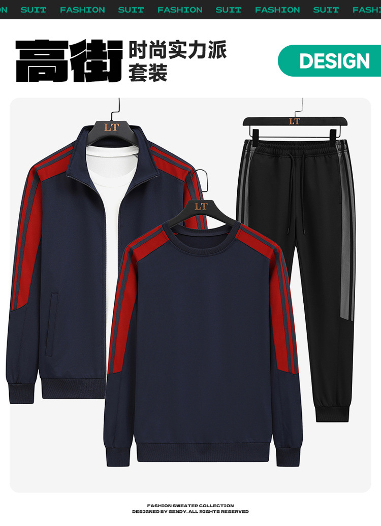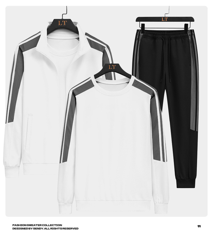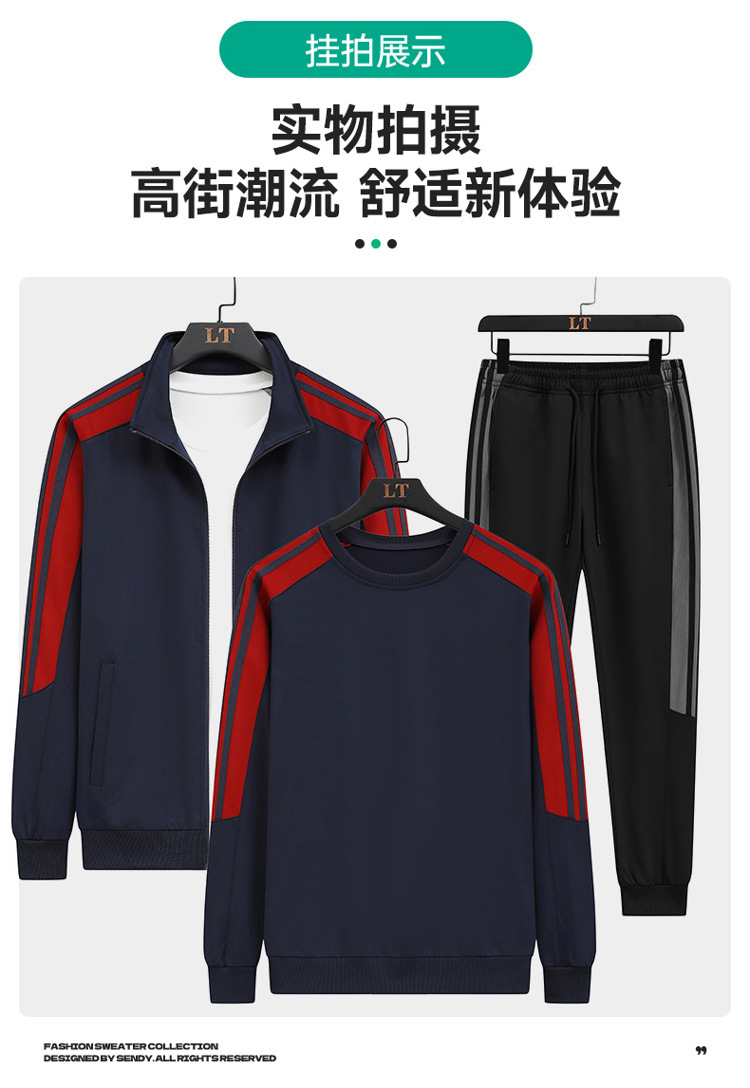 봄과 가을 스포츠 레저 세트 남성 크루 넥 풀오버 칼라 카디건 재킷 패션 브랜드 커플의 스웨트 셔츠 3 피스 세트스토어 가기