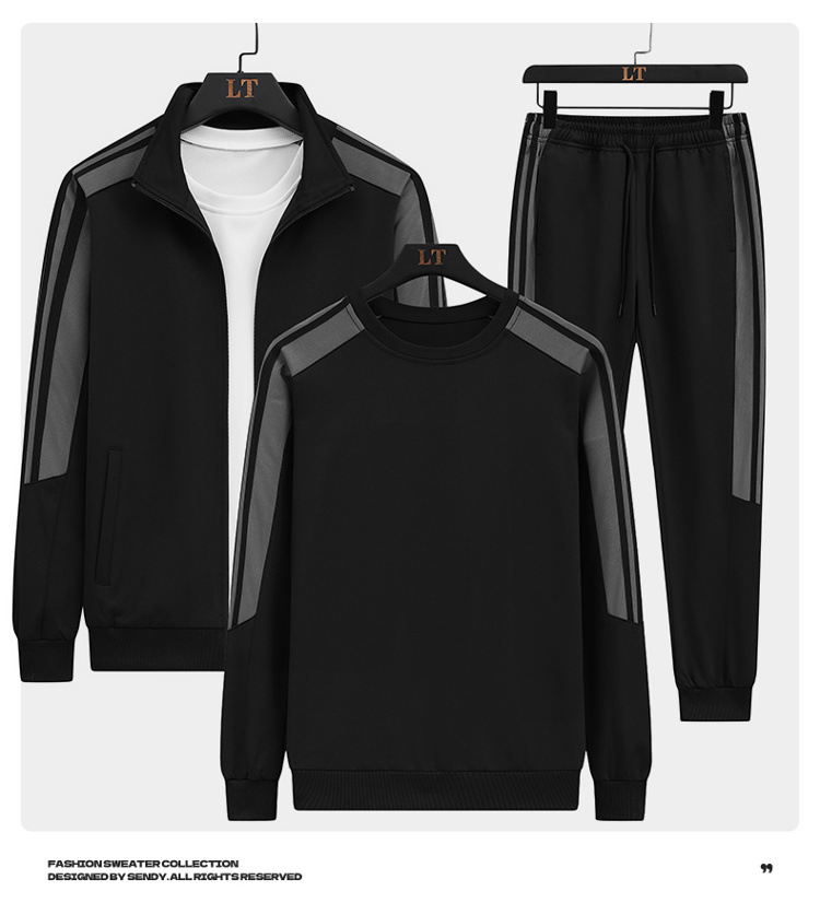 봄과 가을 스포츠 레저 세트 남성 크루 넥 풀오버 칼라 카디건 재킷 패션 브랜드 커플의 스웨트 셔츠 3 피스 세트