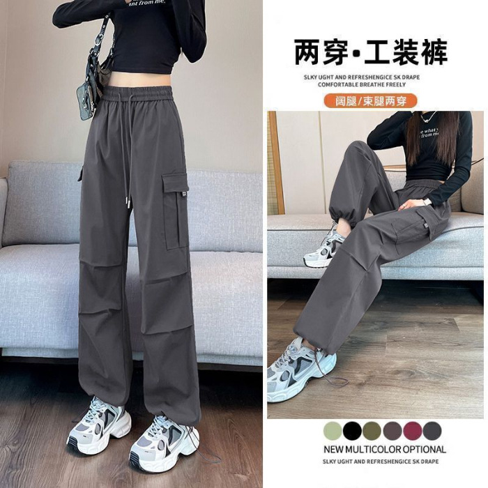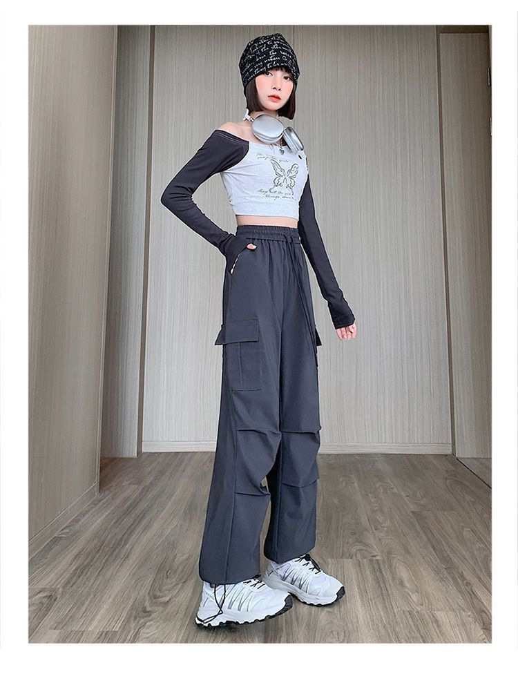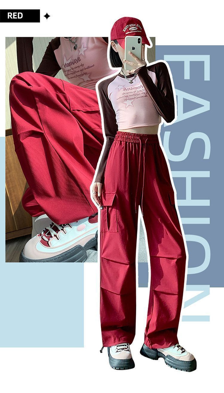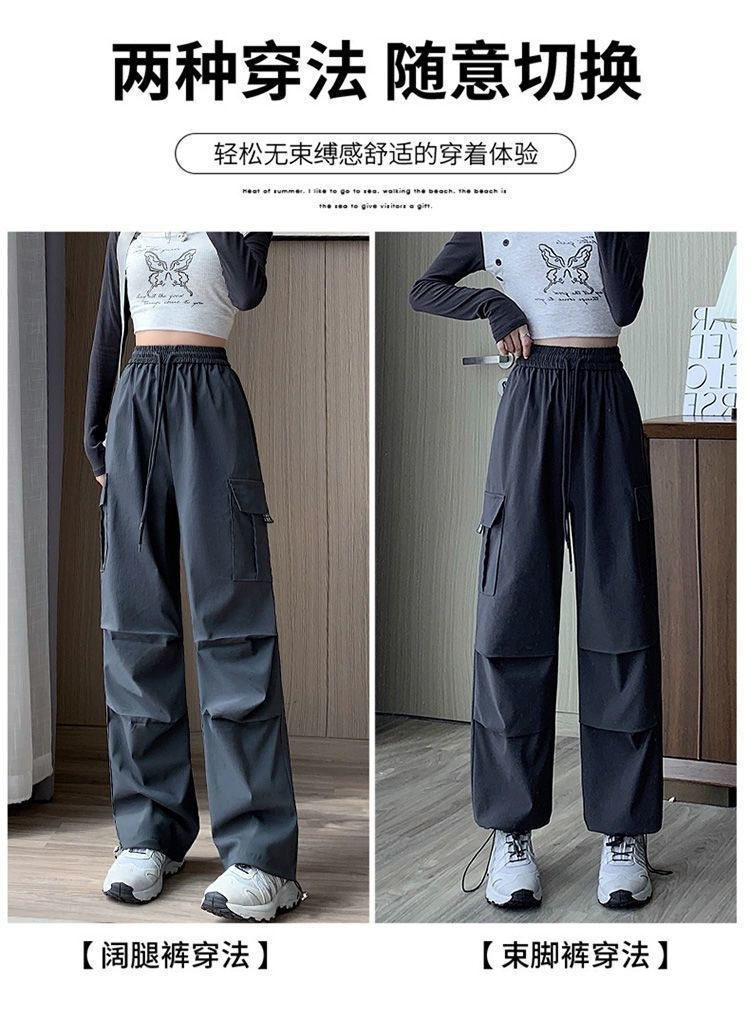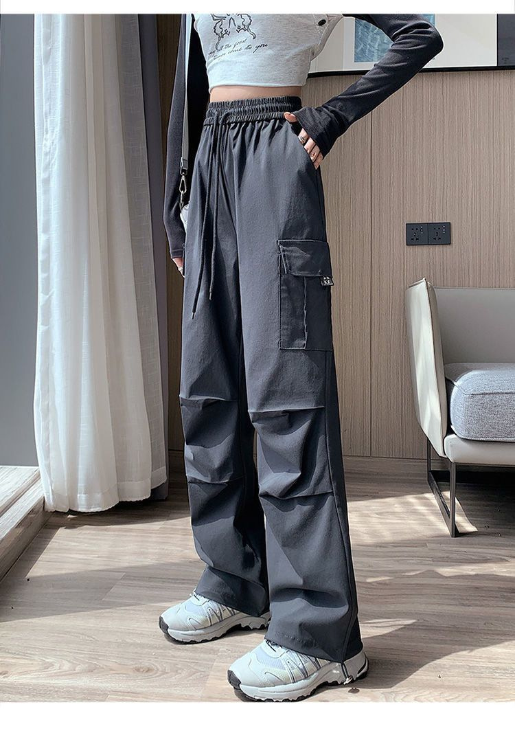 미국 복고풍 바지 여성 가을 높은 허리 디자인 센스 빠른 건조 등산 야외 와이드 레그 스트레이트 캐주얼 스포츠 바지