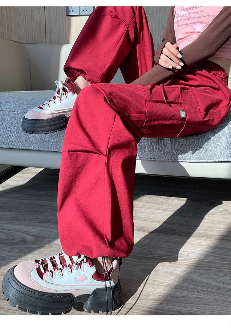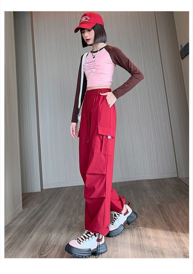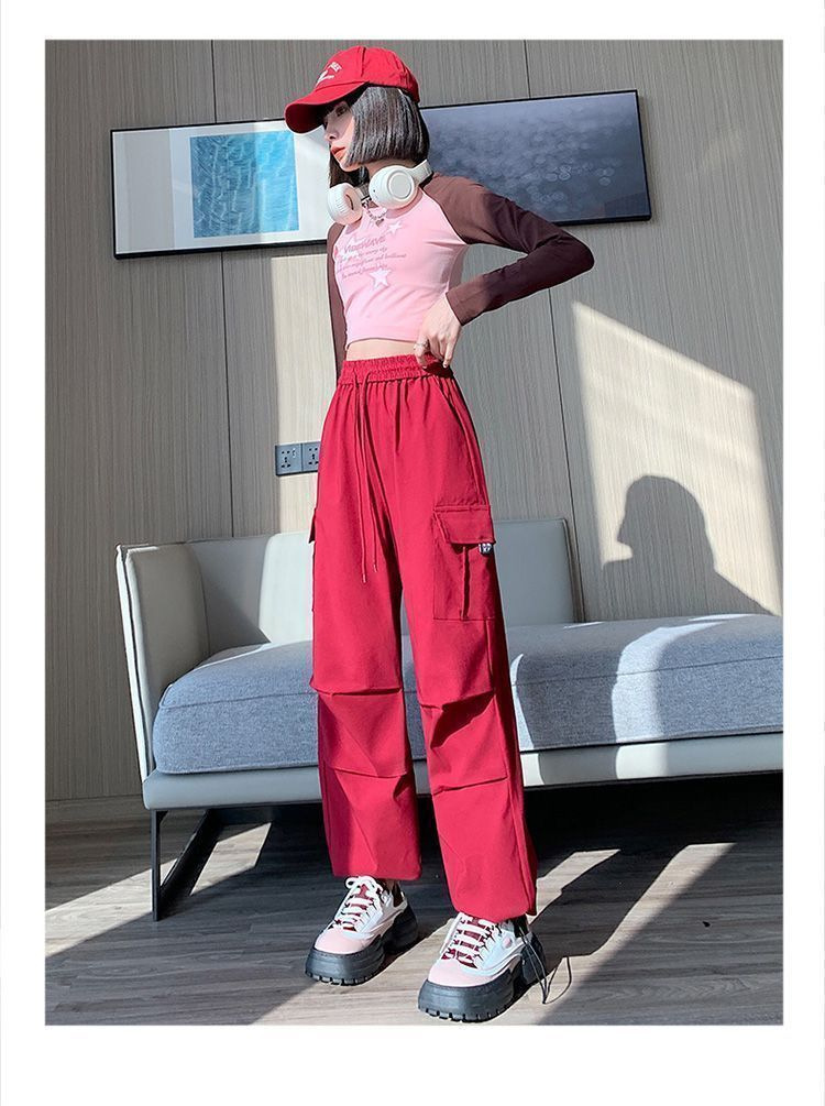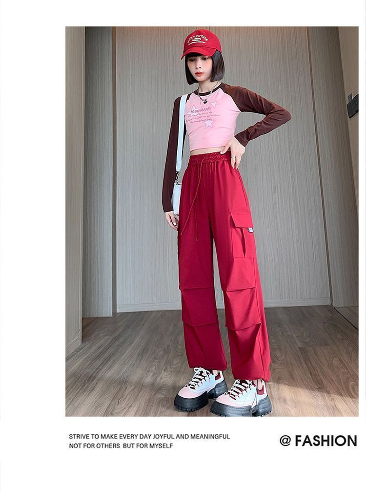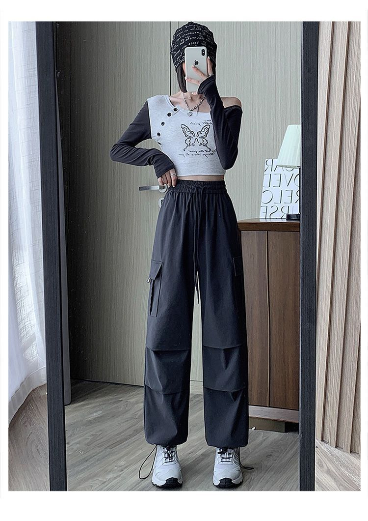 미국 복고풍 바지 여성 가을 높은 허리 디자인 센스 빠른 건조 등산 야외 와이드 레그 스트레이트 캐주얼 스포츠 바지