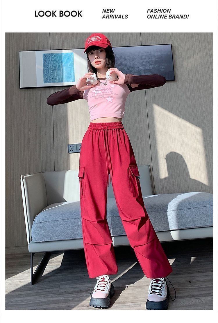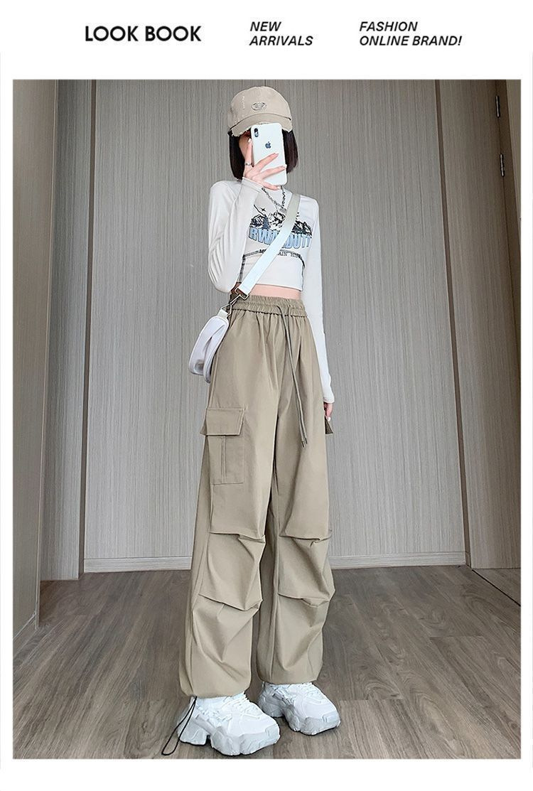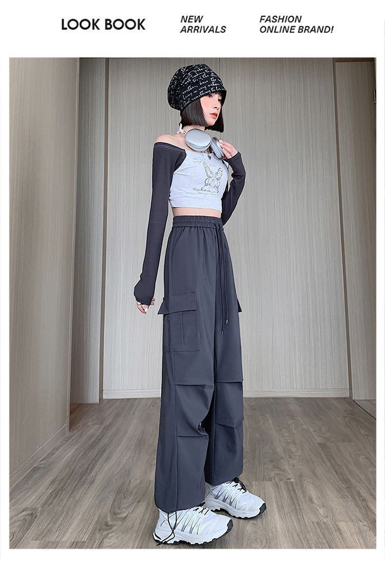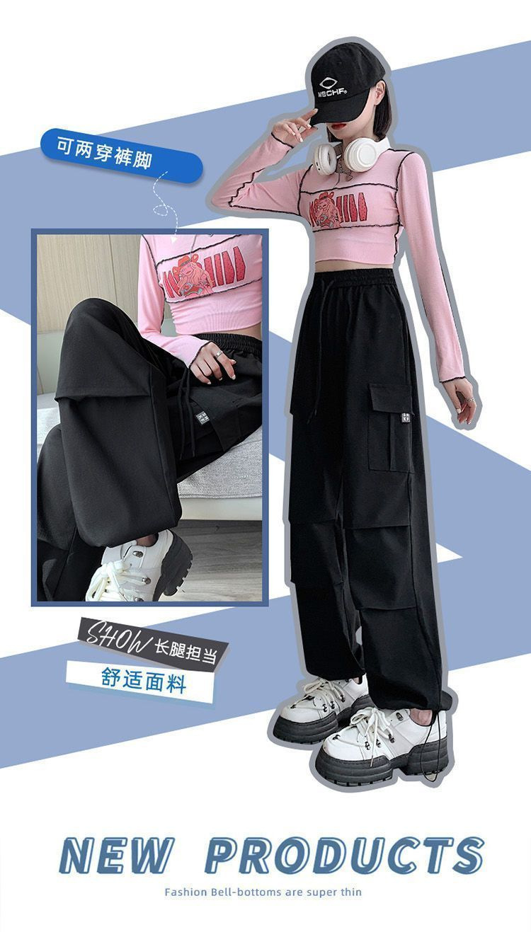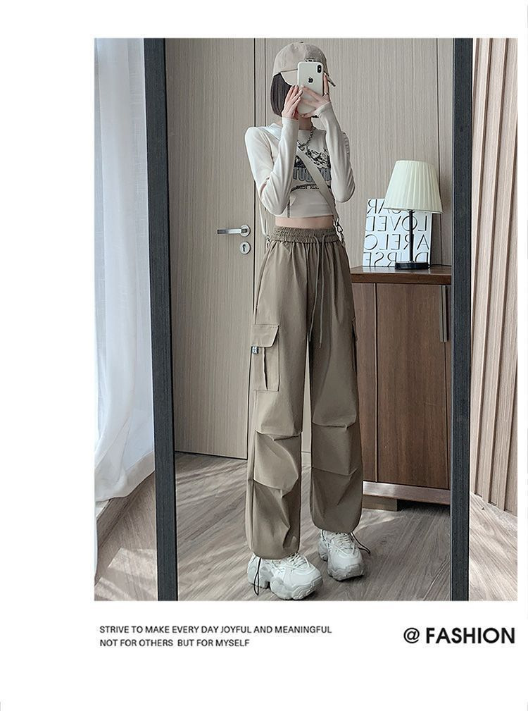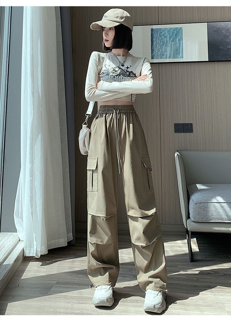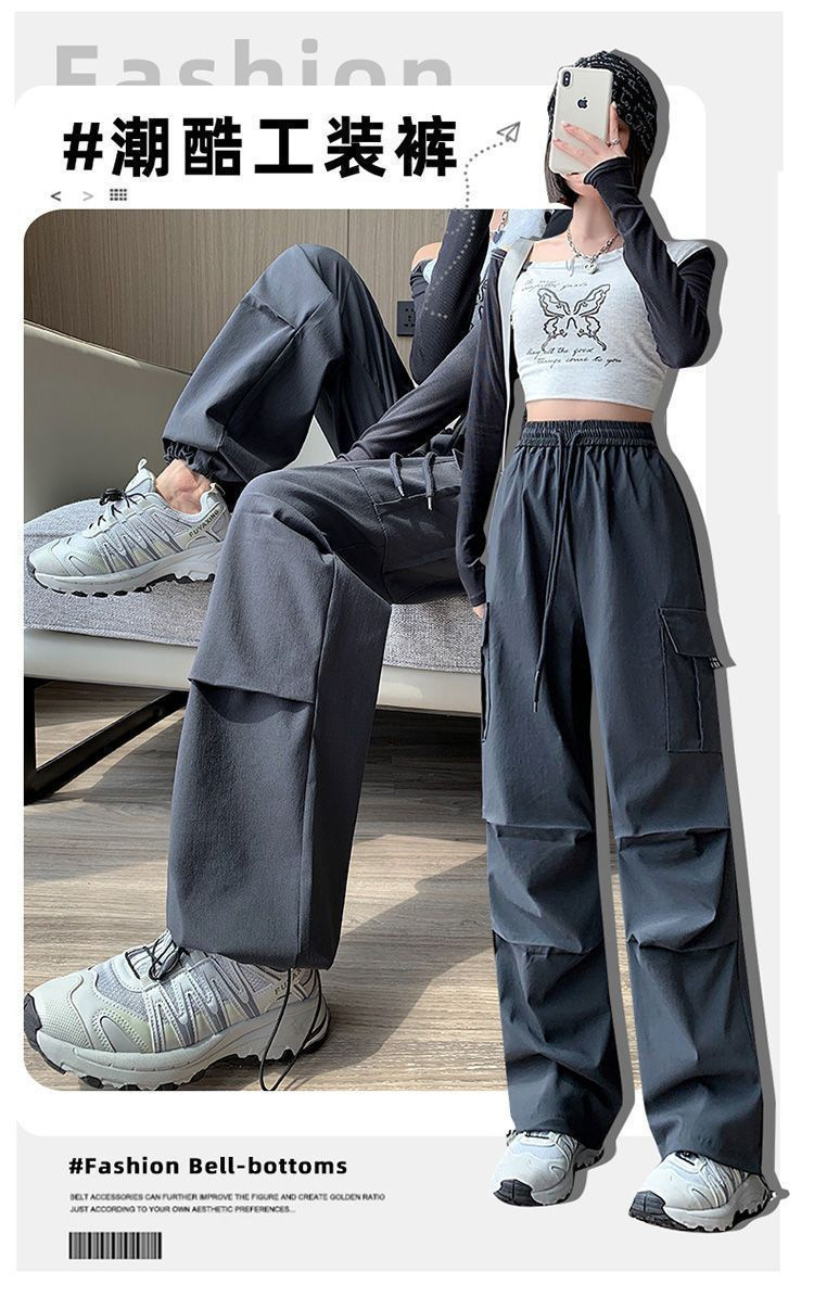 미국 복고풍 바지 여성 가을 높은 허리 디자인 센스 빠른 건조 등산 야외 와이드 레그 스트레이트 캐주얼 스포츠 바지스토어 가기