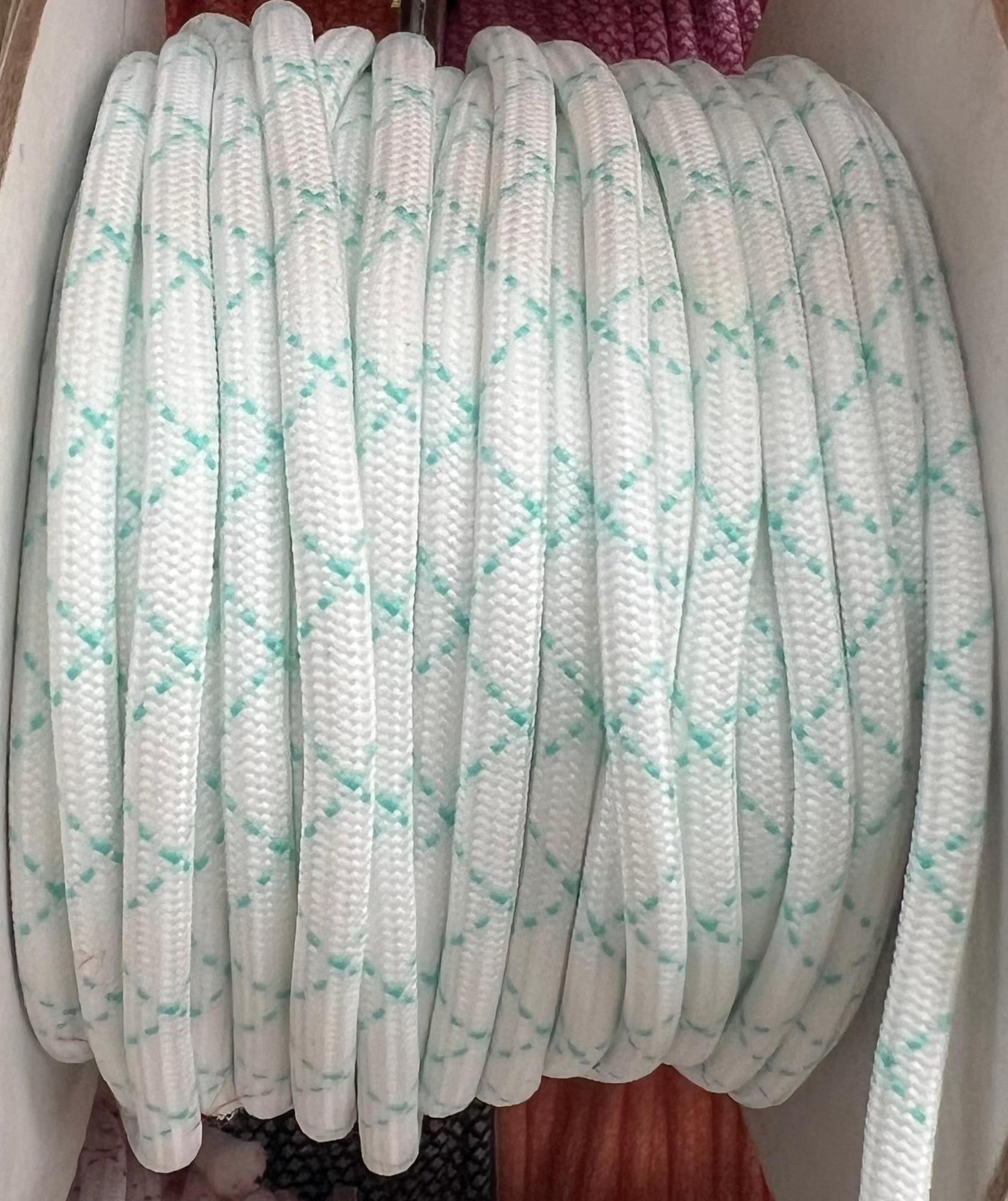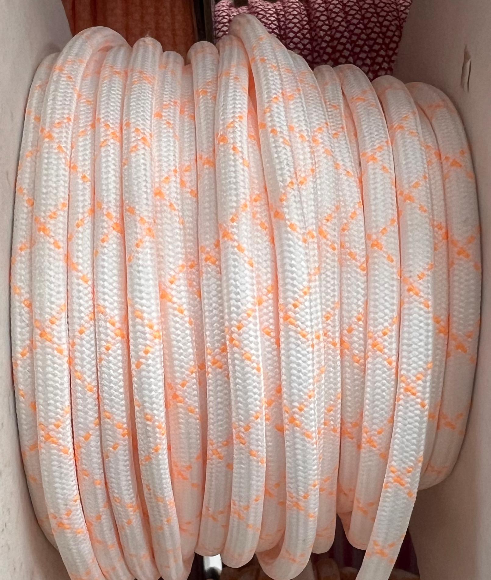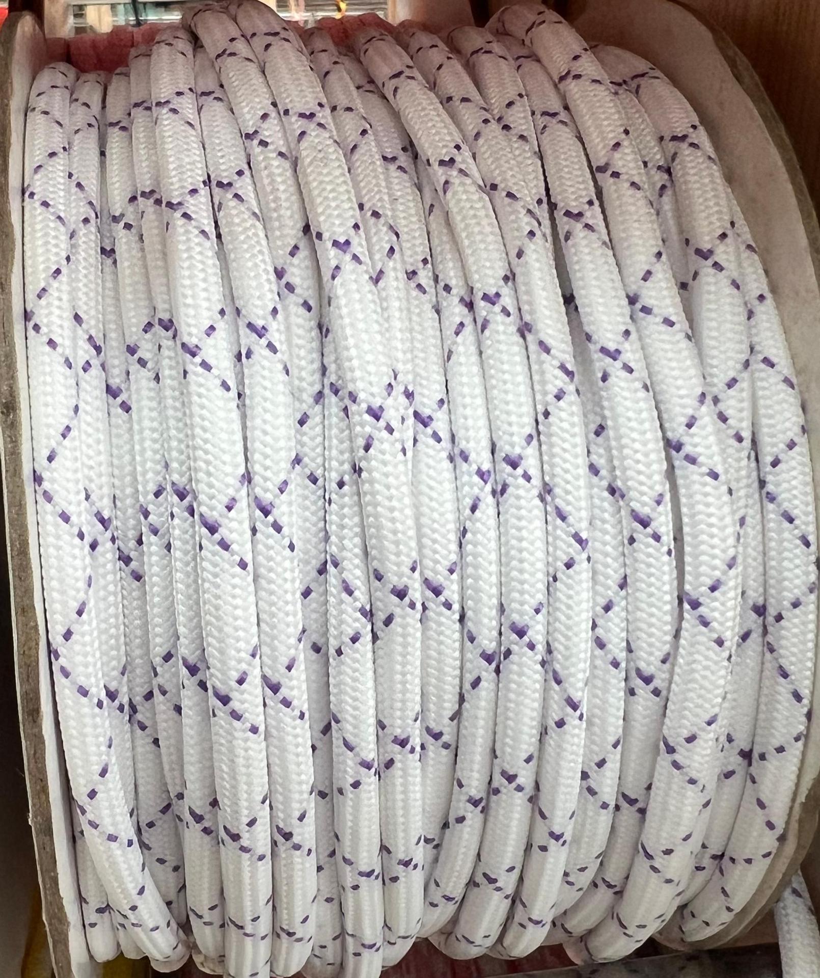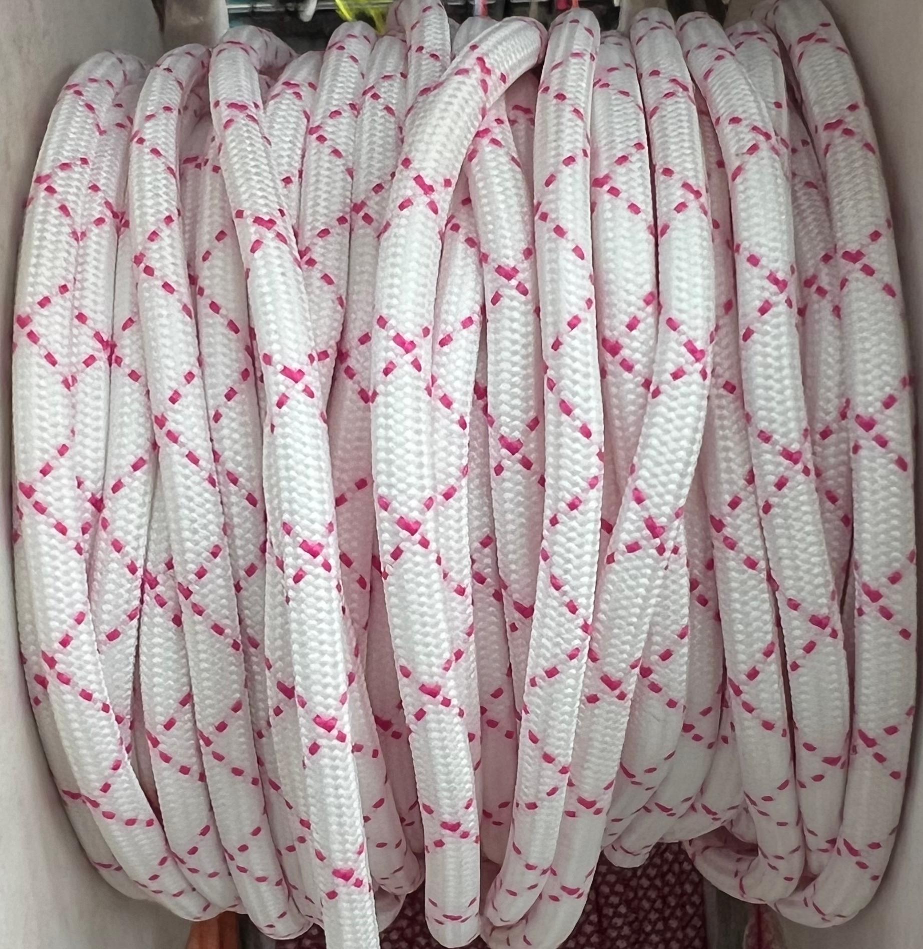 재고 흰색 배경 색상 크로스 점프 포인트 암호화 폴리 에스테르 로프 스타일 스웨터 바지 로프 짠 가방 교수형 로프
