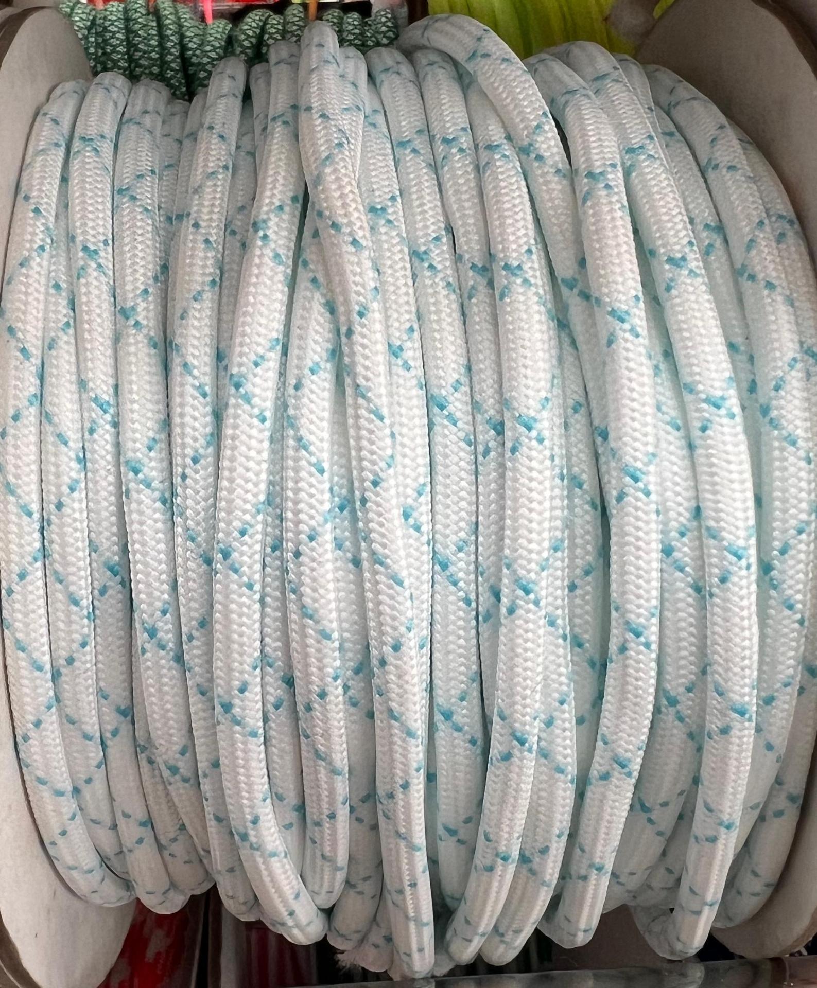 재고 흰색 배경 색상 크로스 점프 포인트 암호화 폴리 에스테르 로프 스타일 스웨터 바지 로프 짠 가방 교수형 로프스토어 가기