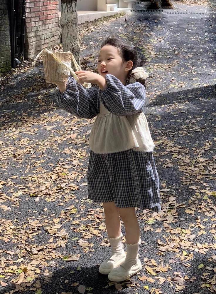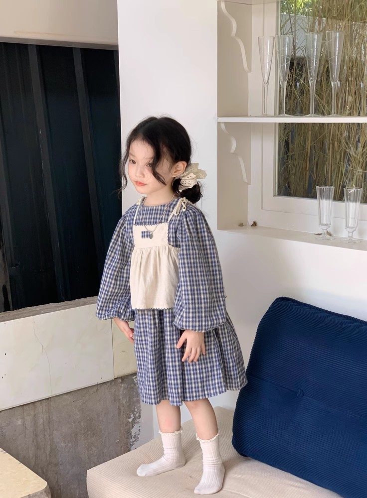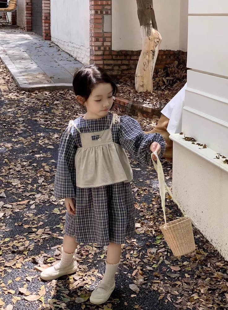 부모-자녀룩 여아 세트, 전원풍 긴팔 원피스와 멜빵 조끼 투피스 세트, 2025 봄가을 의류스토어 가기