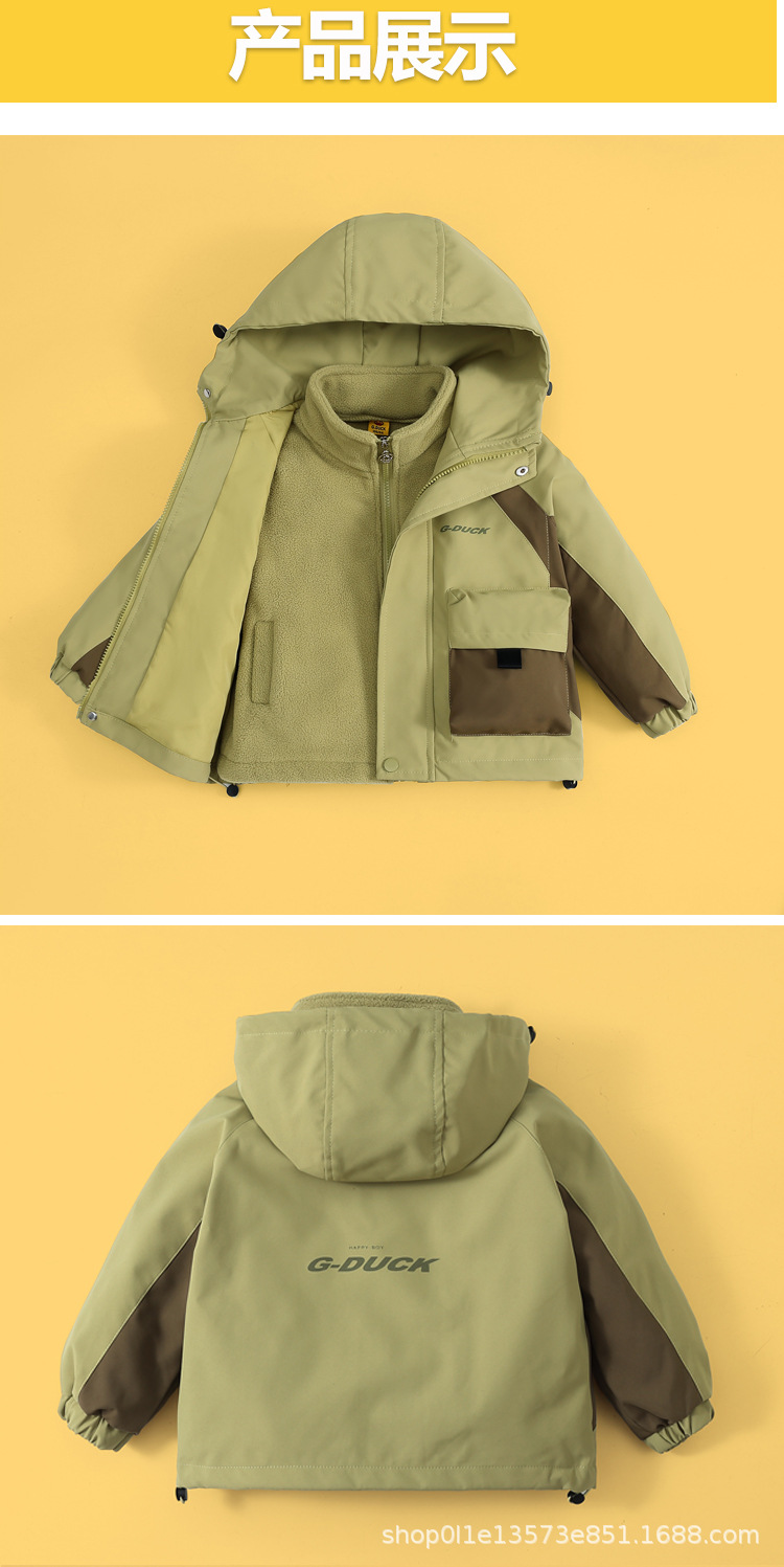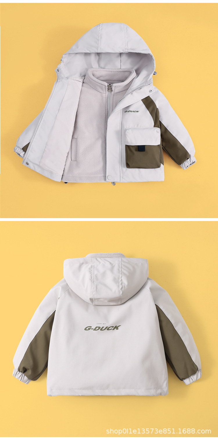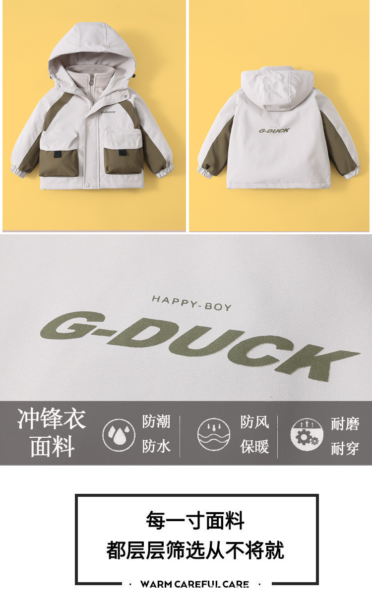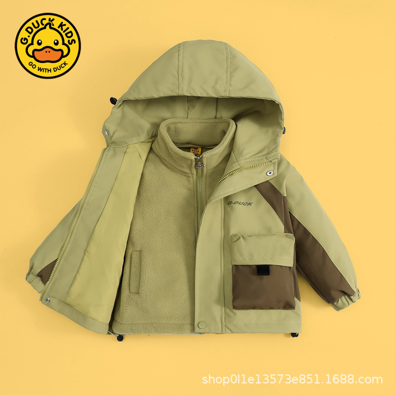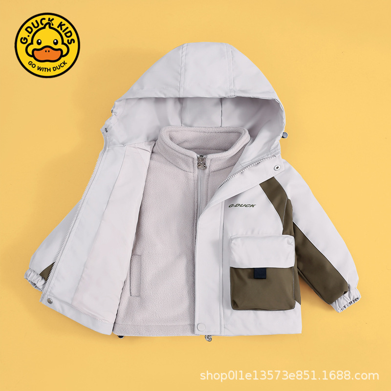 작은 노란색 오리 충전 옷 세트 두 조각 후드 뉴 보이즈 가을 아동복 방수 착용-저항하는 중간 어린이 코트 트렌디스토어 가기