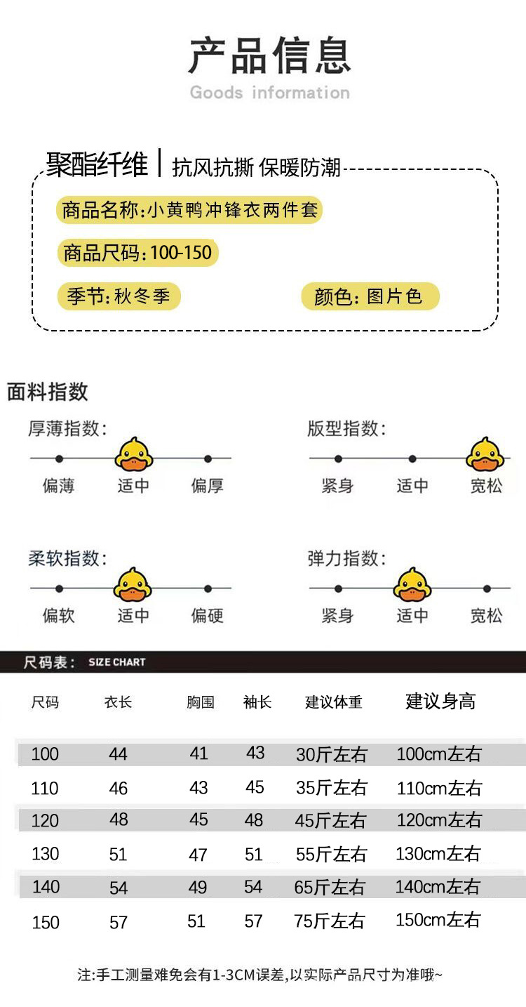 작은 노란색 오리 충전 옷 세트 두 조각 후드 뉴 보이즈 가을 아동복 방수 착용-저항하는 중간 어린이 코트 트렌디