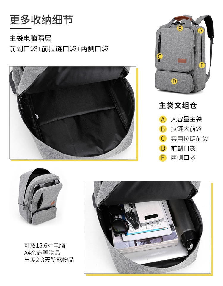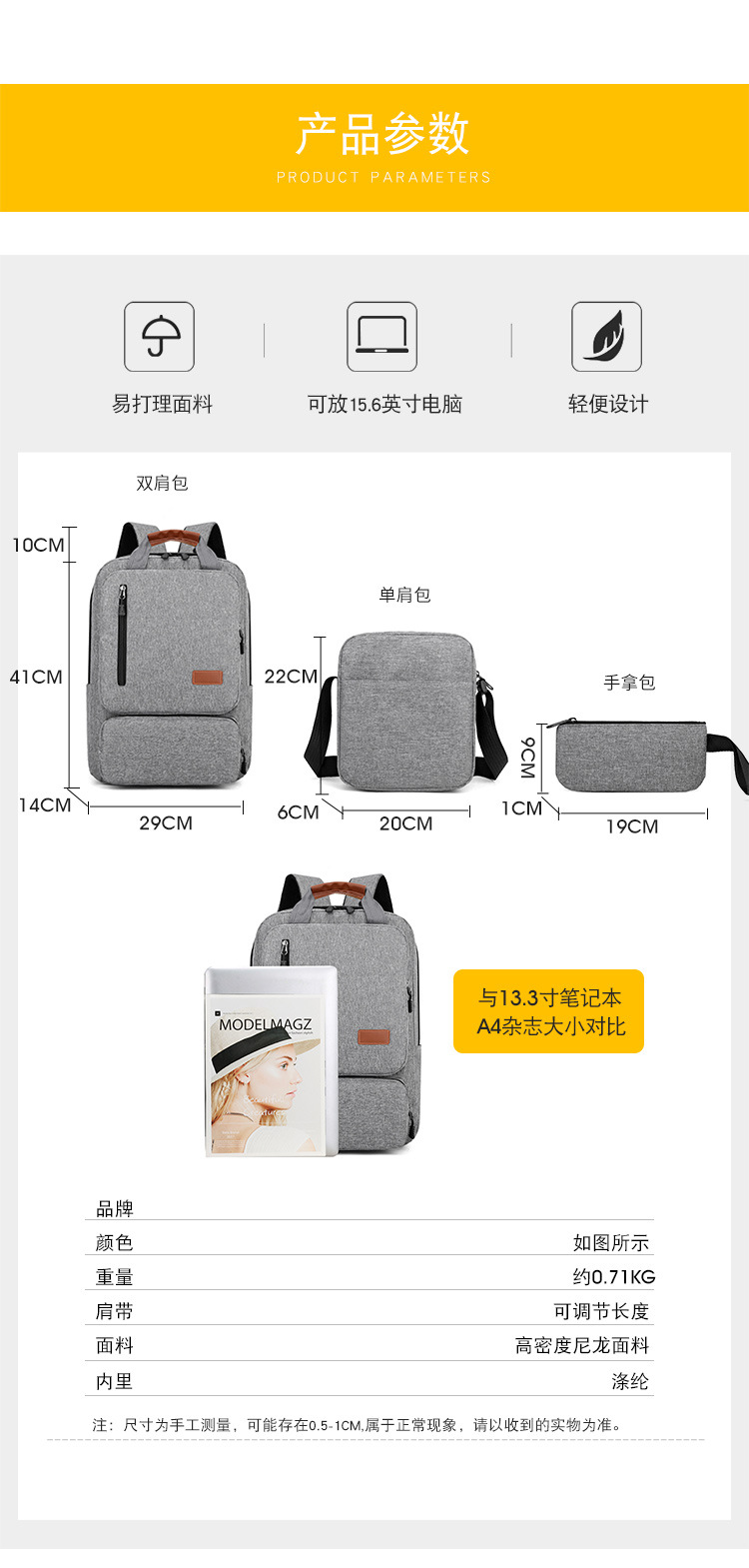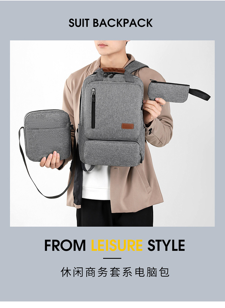 3 피스 다기능 15.6 인치 컴퓨터 가방 비즈니스 통근 남성 배낭 대용량 휴대용 여행 배낭