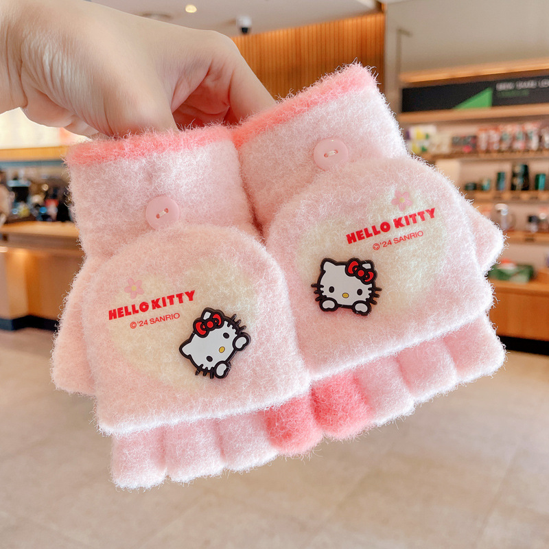 2024 년 새로운 어린이 장갑 가을과 겨울 소녀 따뜻한 유물 어린이 봄과 가을 보호 손가락 산리오 도매