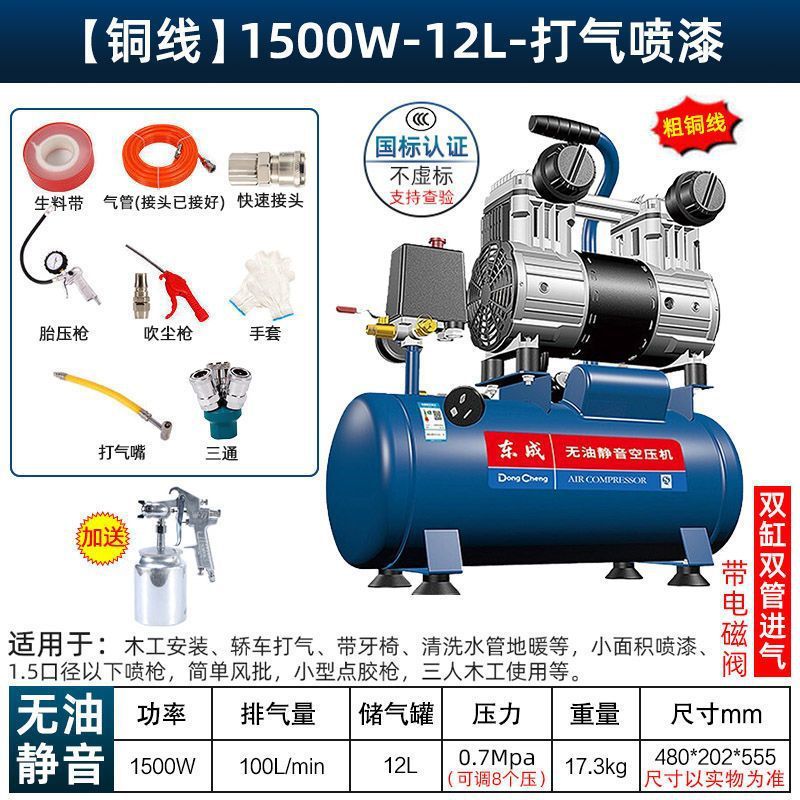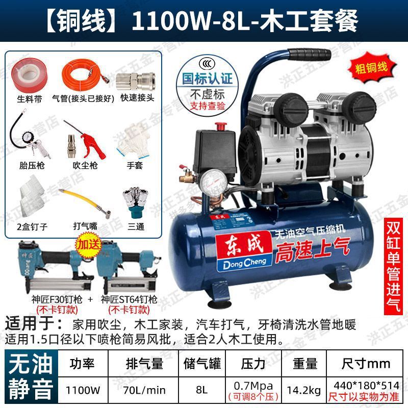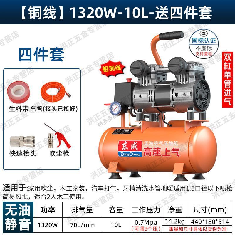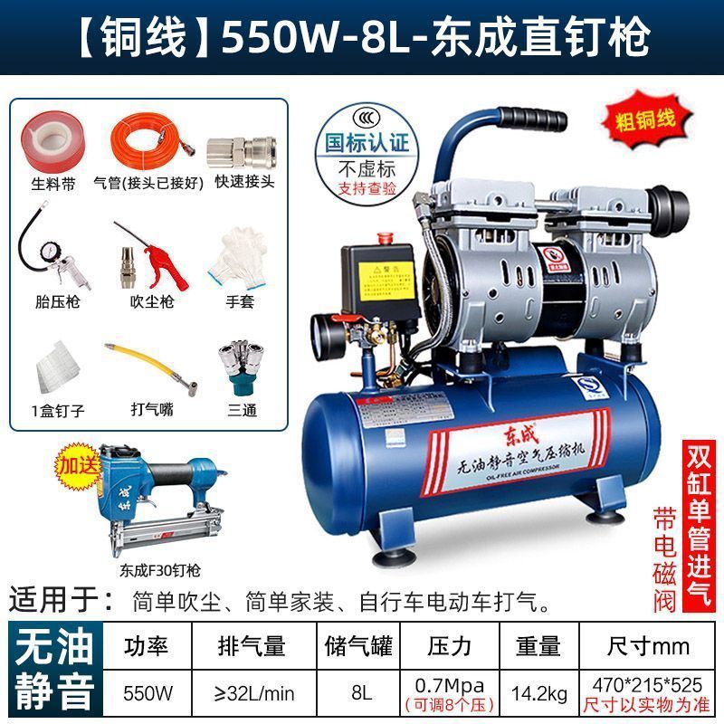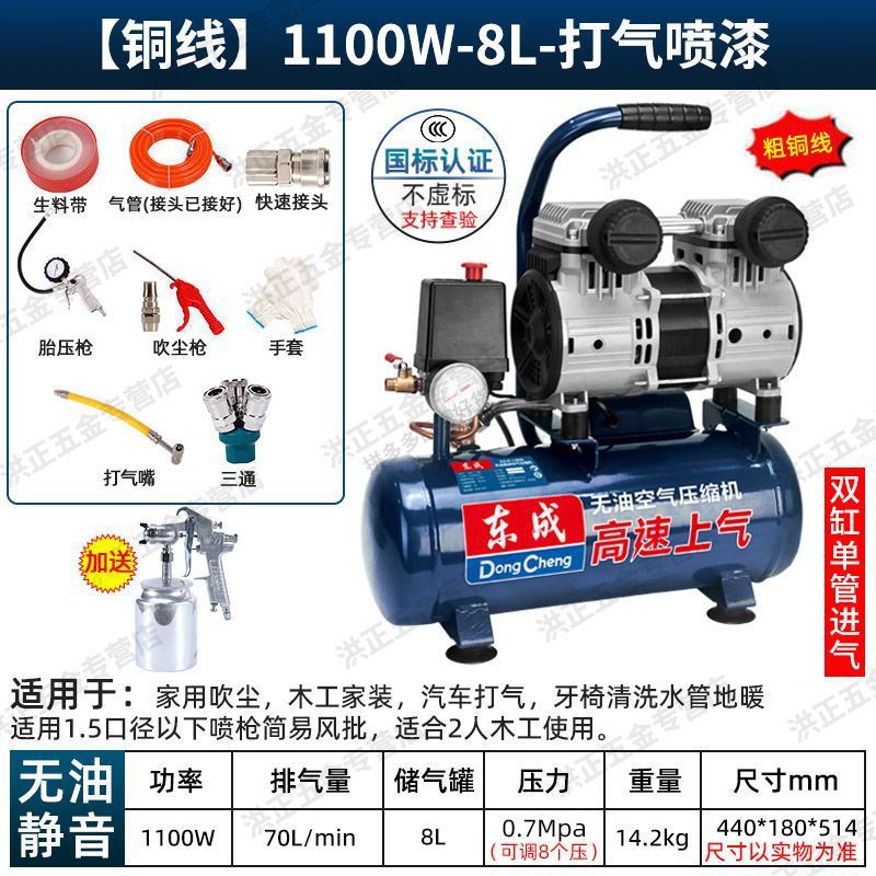 동청 공기 펌프 공기 압축기 220V 소형 오일 프리 소음기 목공 가정용 휴대용 공기 압축기
