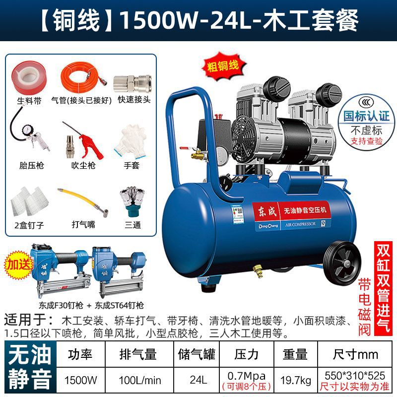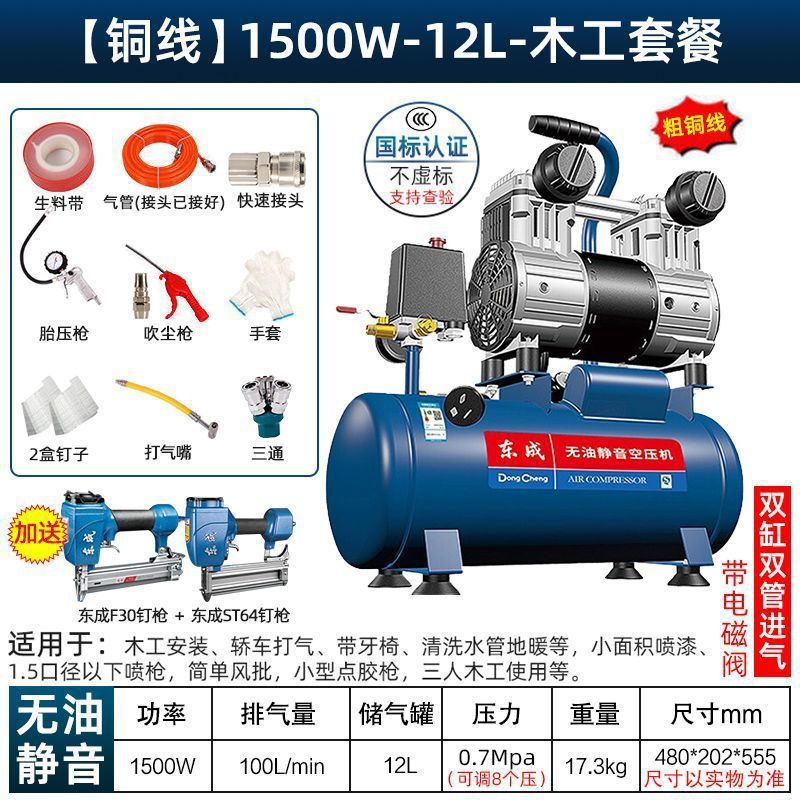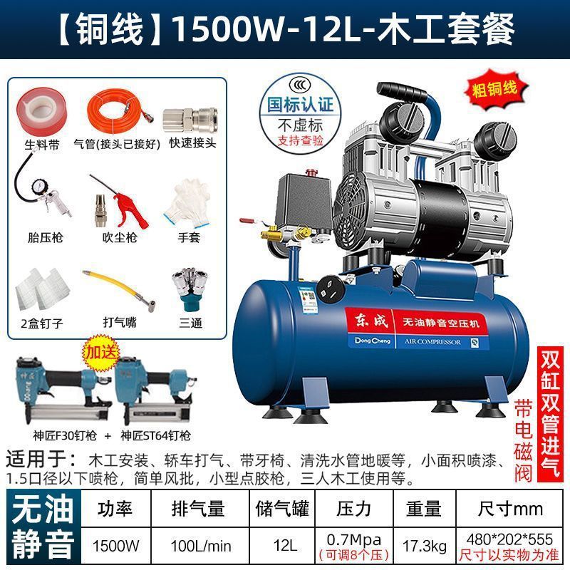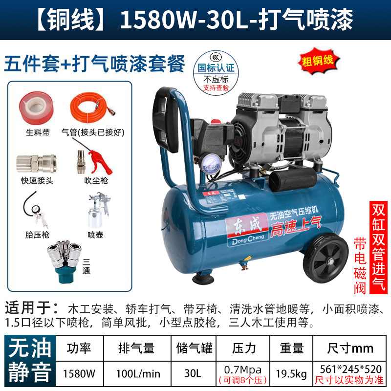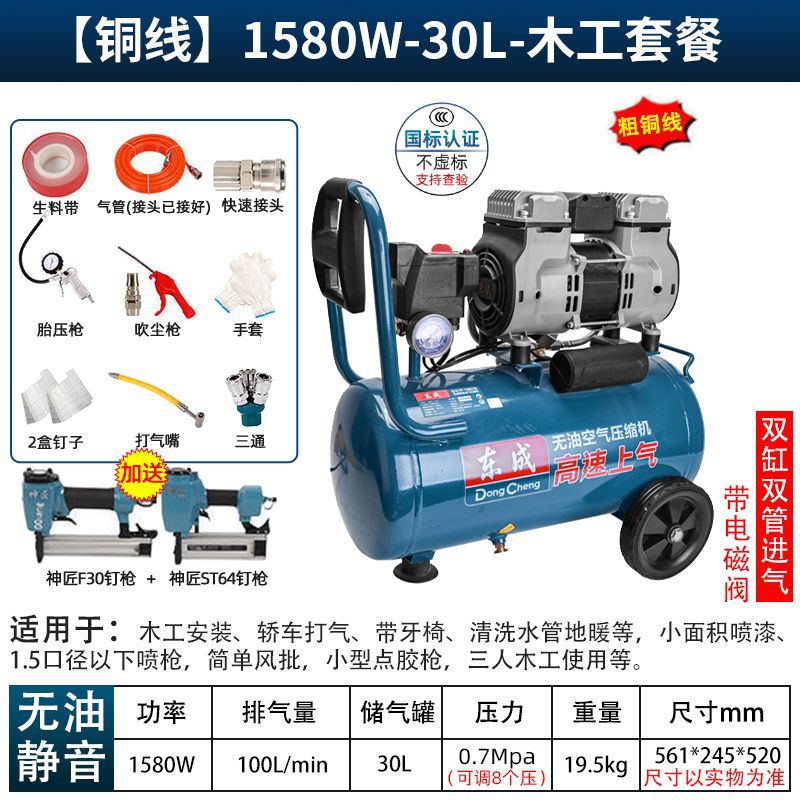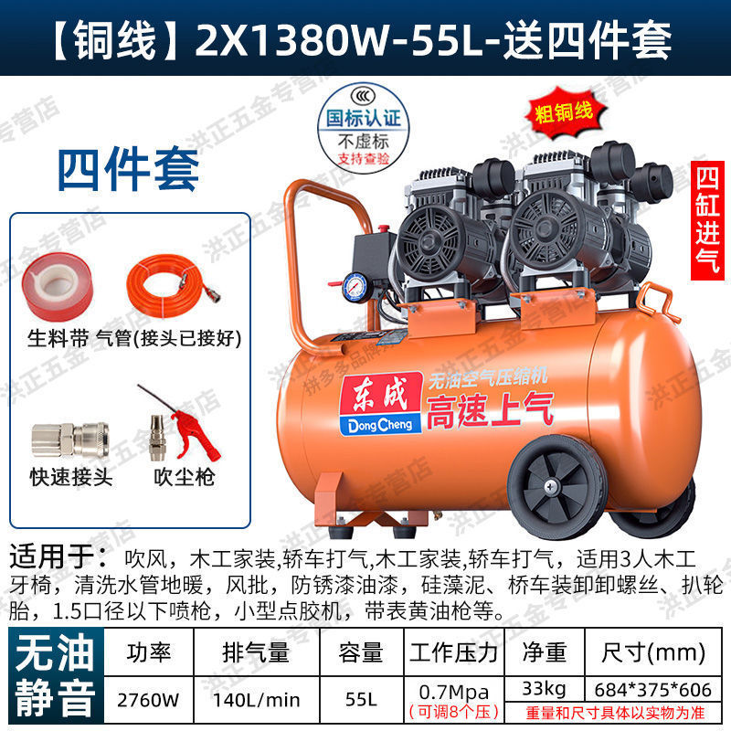 동청 공기 펌프 공기 압축기 220V 소형 오일 프리 소음기 목공 가정용 휴대용 공기 압축기
