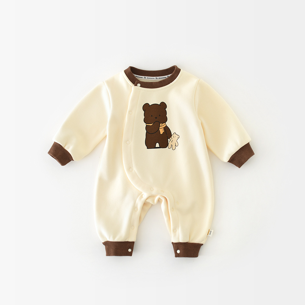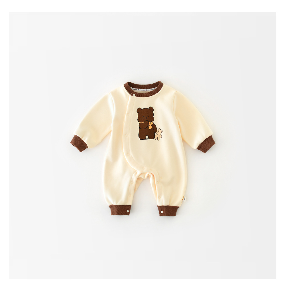 2025秋季新款儿童卡通连身衣 新生儿条纹脱卸领长袖爬服53566