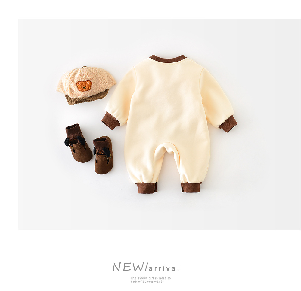 婴儿连体衣秋冬绗棉男宝外出棉服新生儿韩版冬加绒保暖爬服送围巾