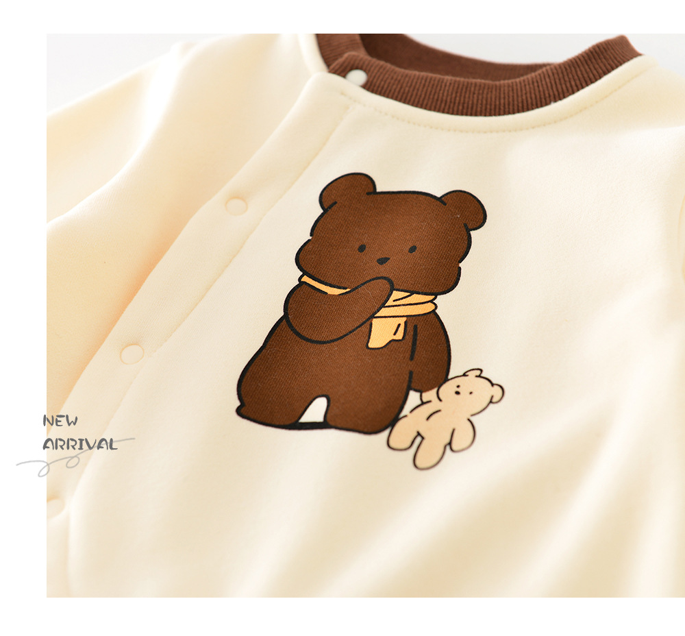 宝宝棉衣套装婴幼儿小熊连帽绗棉保暖冬装连帽加绒棉衣棉裤男女童