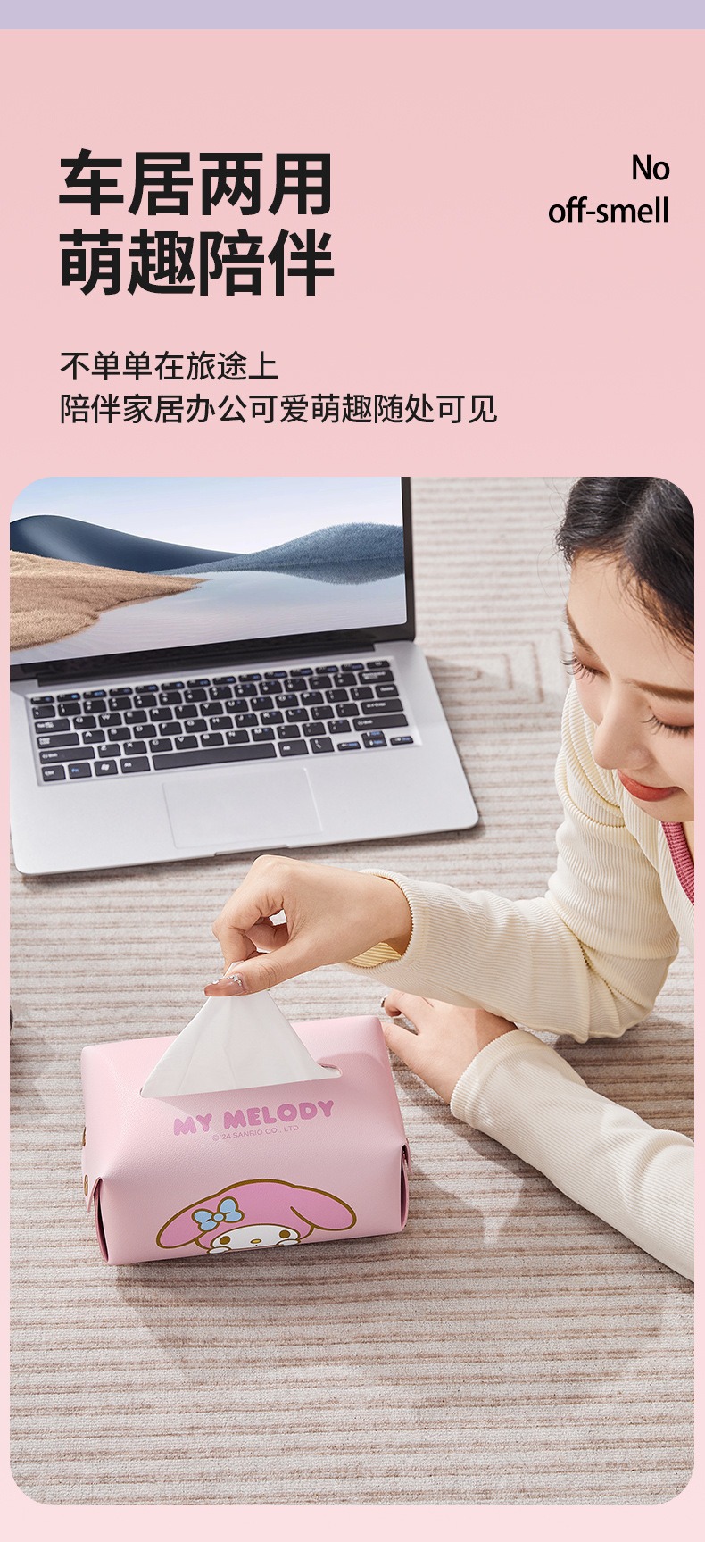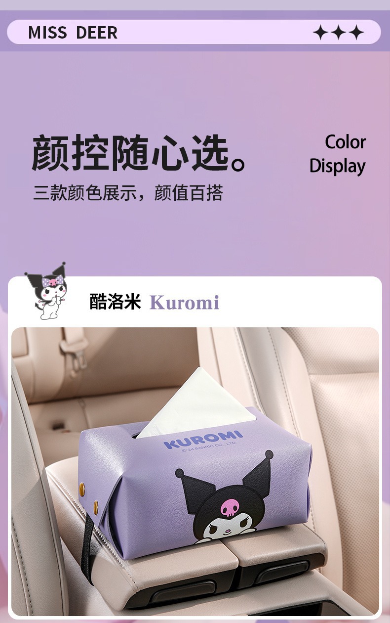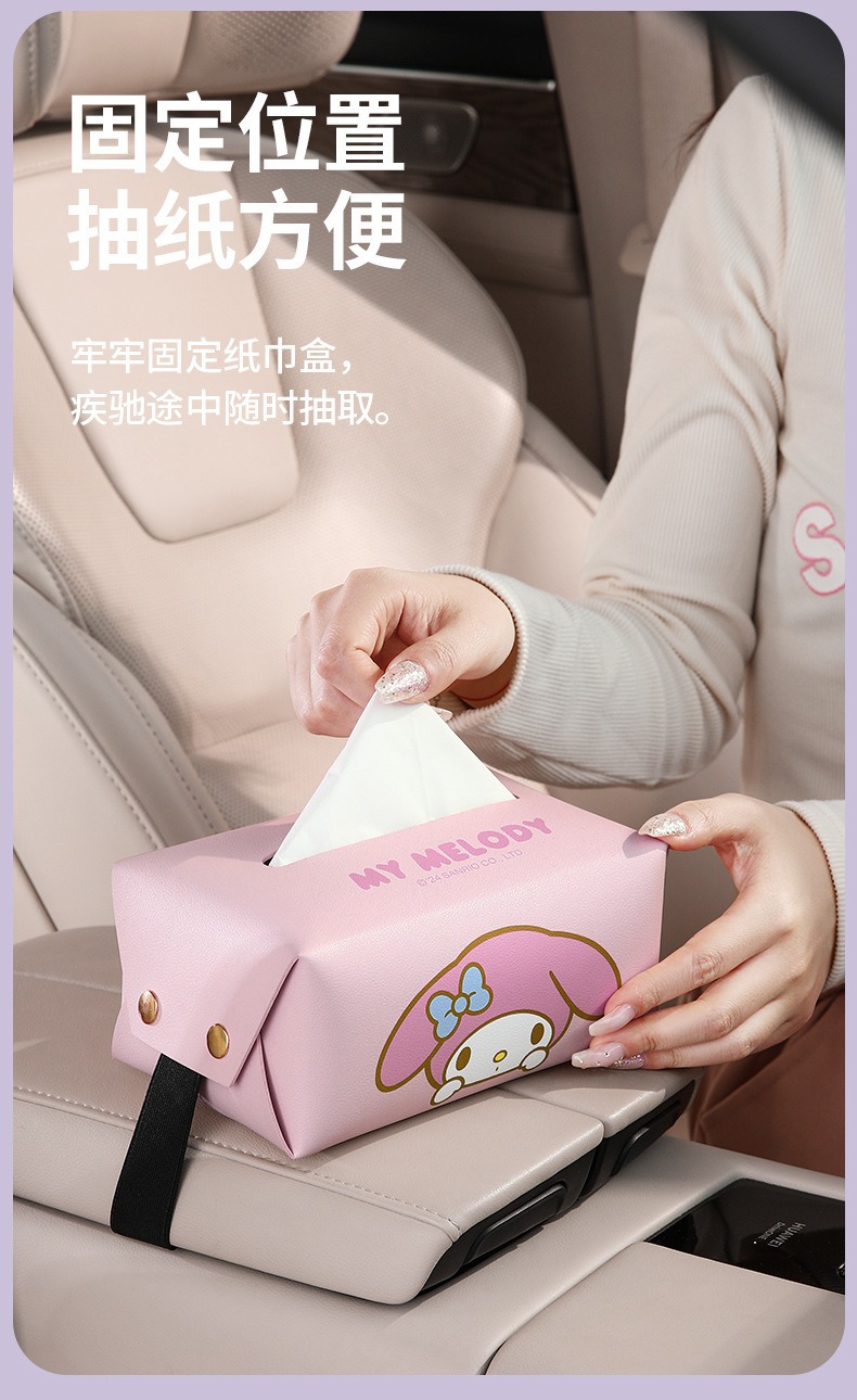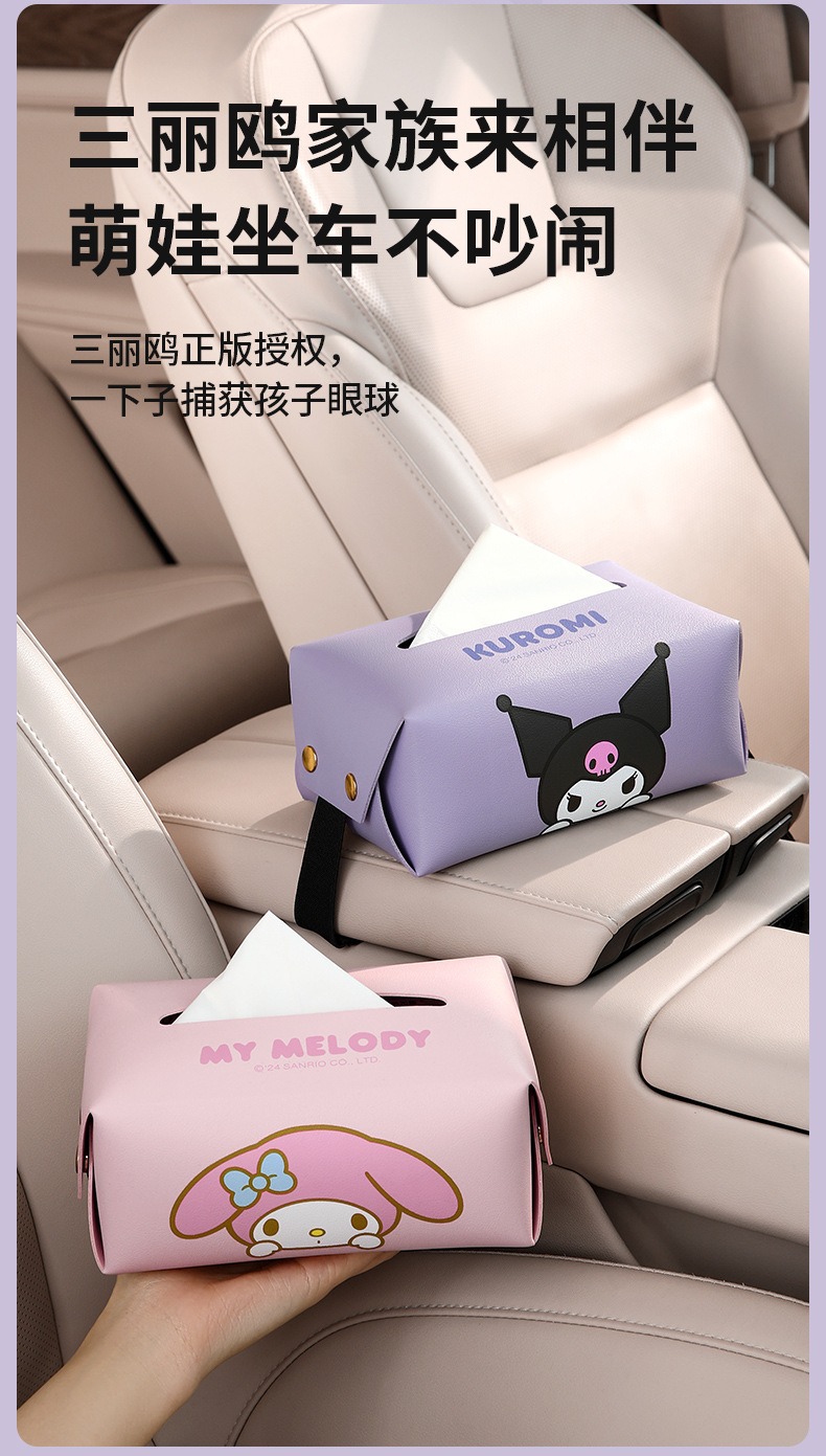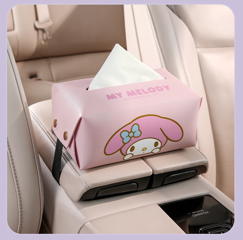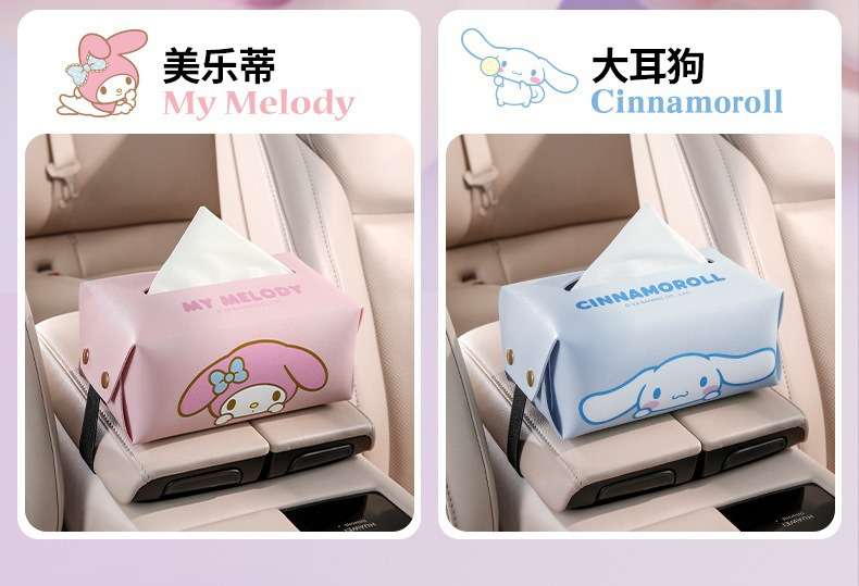 산리오 차량용 티슈박스, 차량 내 고급 장식품, 창의적이고 귀여운 만화 스타일의 팔걸이 박스 티슈박스