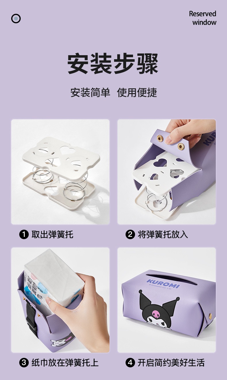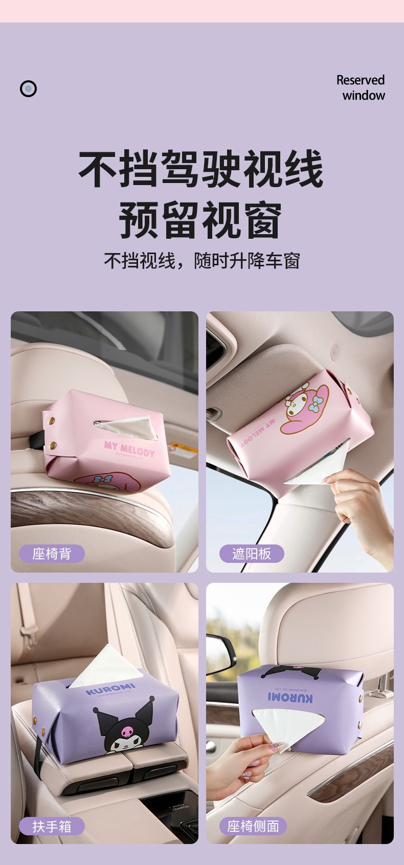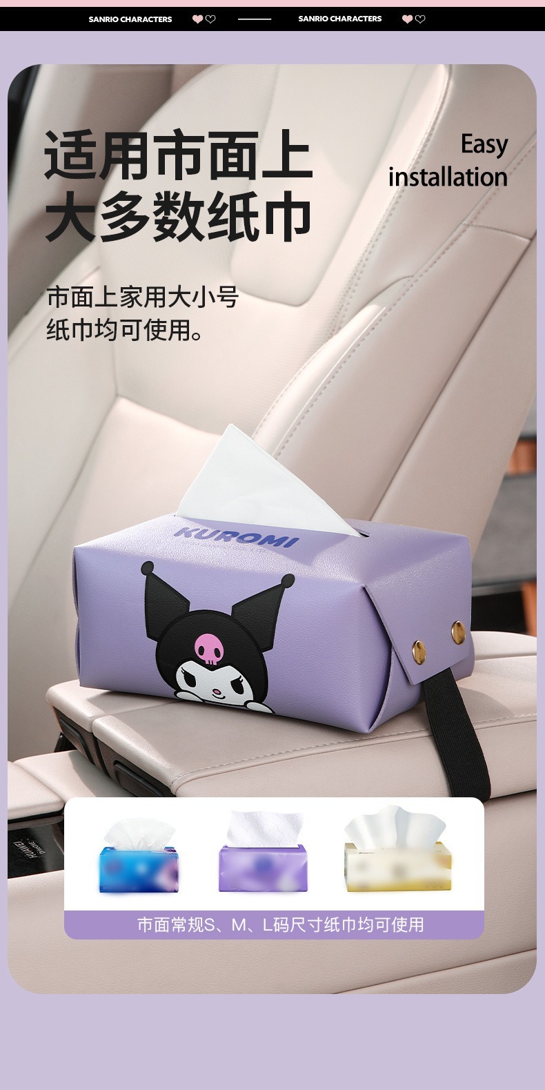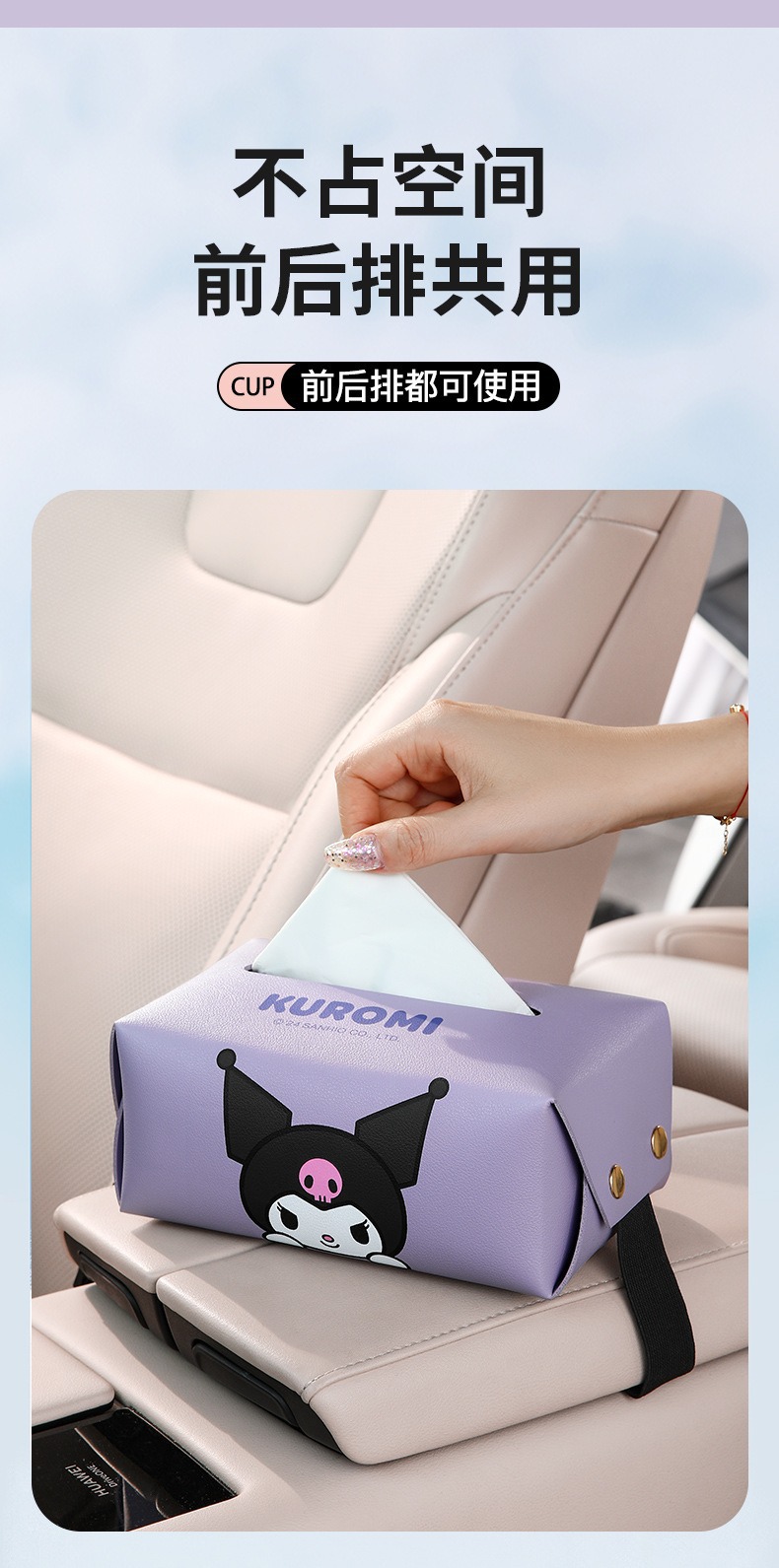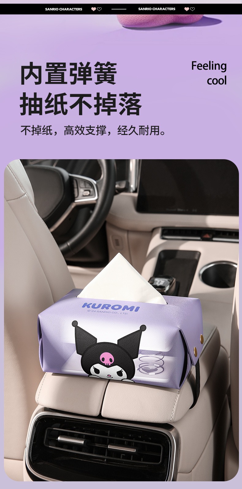 산리오 차량용 티슈박스, 차량 내 고급 장식품, 창의적이고 귀여운 만화 스타일의 팔걸이 박스 티슈박스