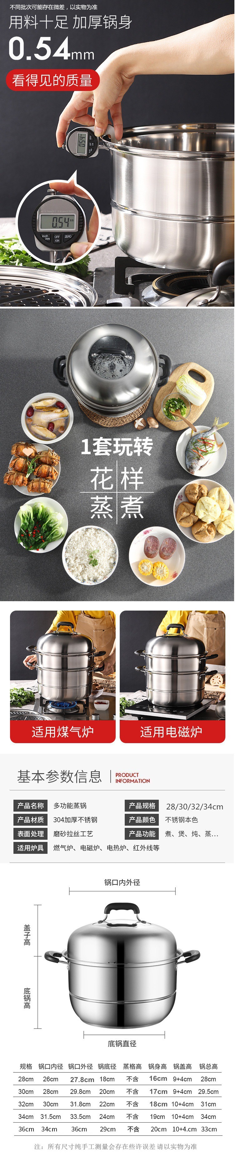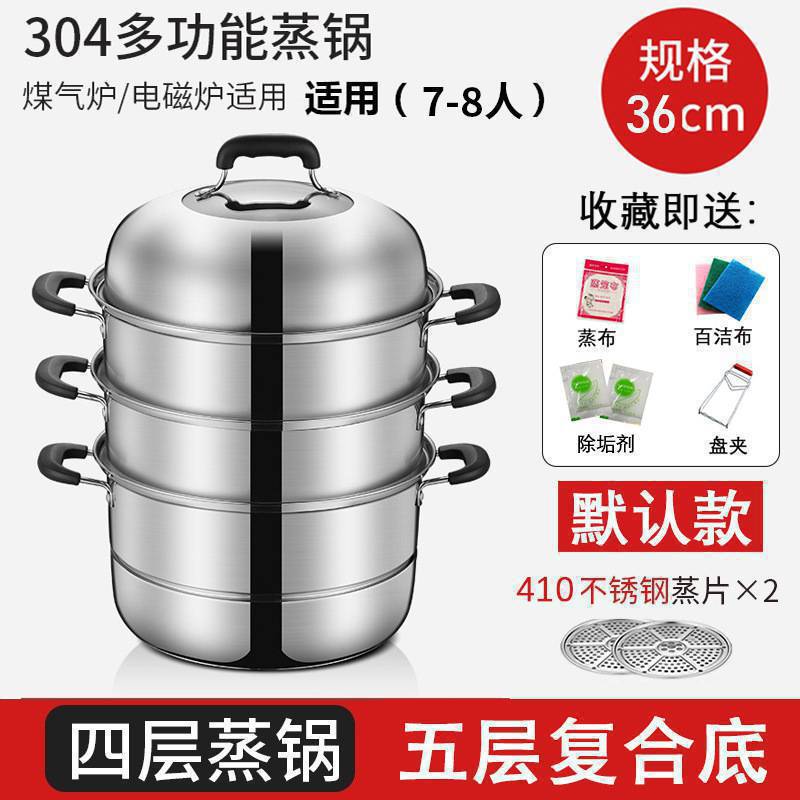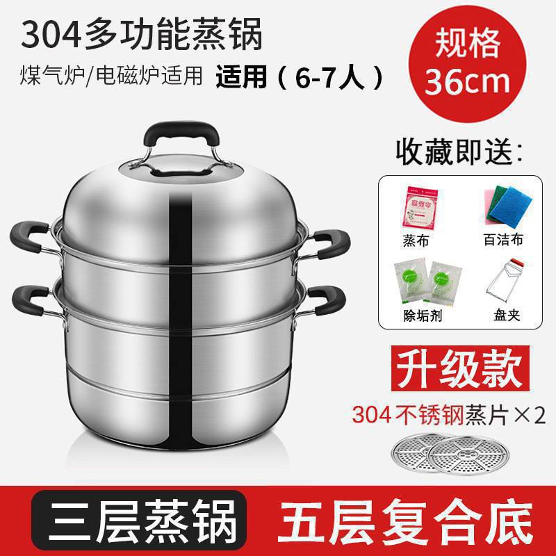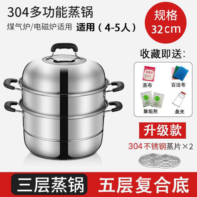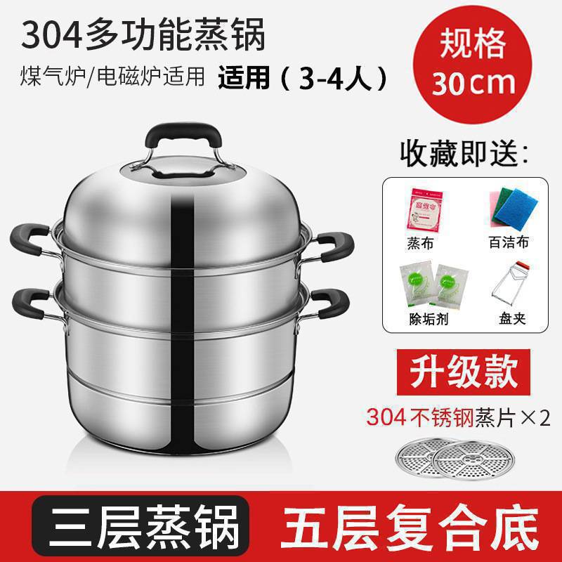 기선 304 스테인레스 스틸 3 층 두꺼운 가정용 소형 2 층 증기선 대형 기선 찜 빵 찐 생선 가스 유도 쿠커