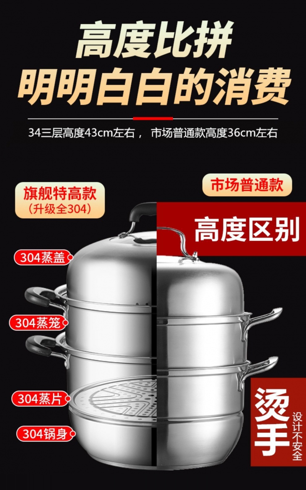 • 업그레이드된 [304두꺼워짐] 36cm 3겹, 두꺼운 바닥