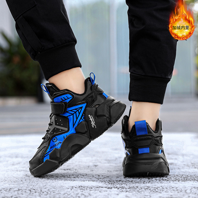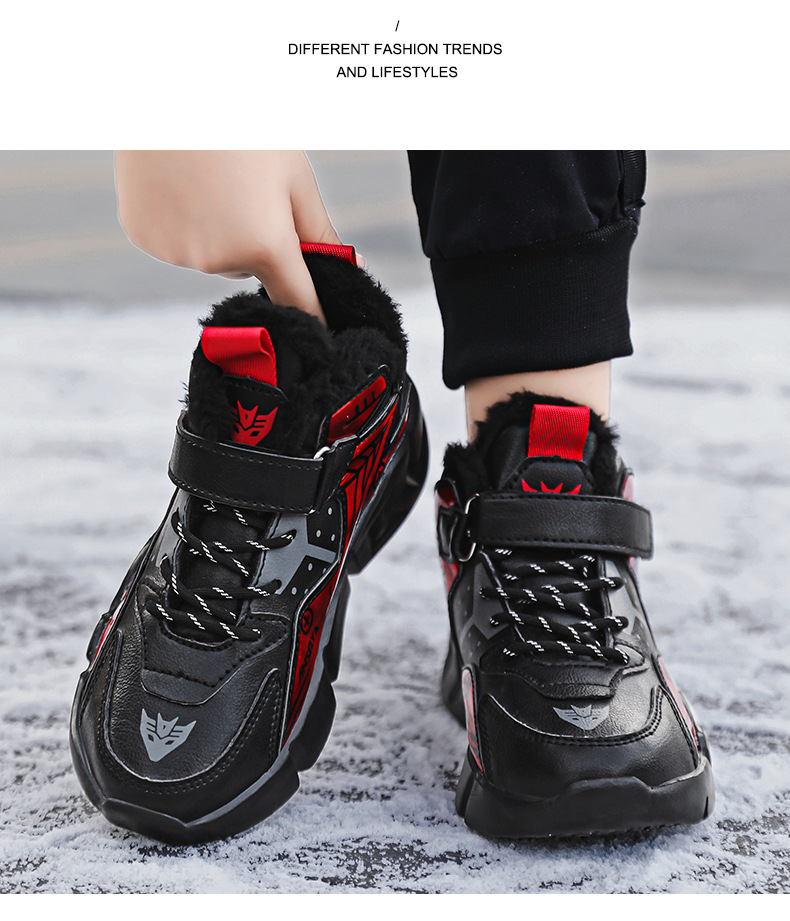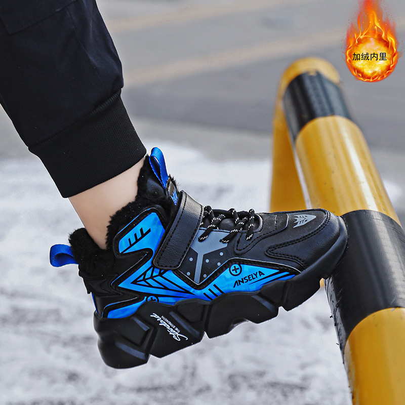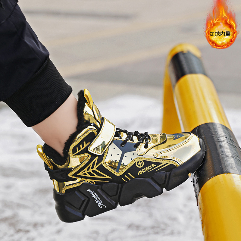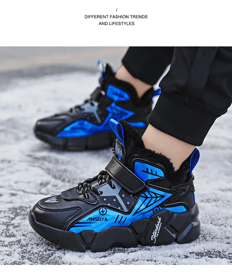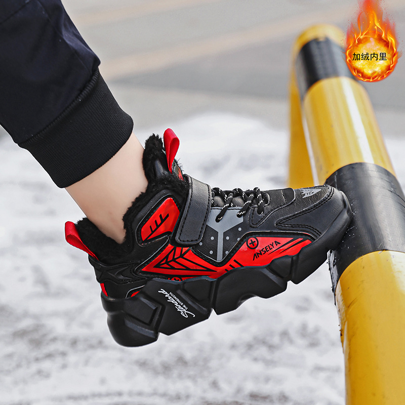 어린이 코튼 신발 큰면 겨울 따뜻한 소년의 미드 톱 운동화 소프트 솔 경량 미끄럼 방지 캐주얼 신발 큰 어린이 신발