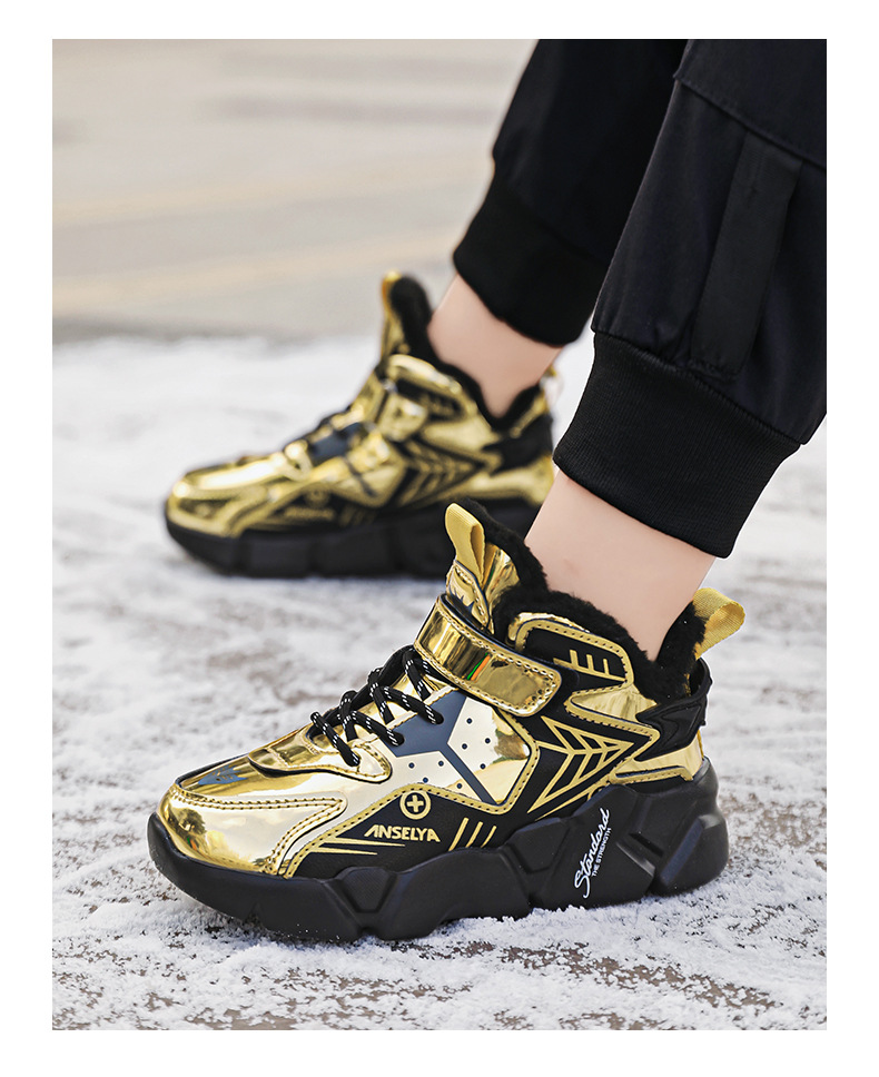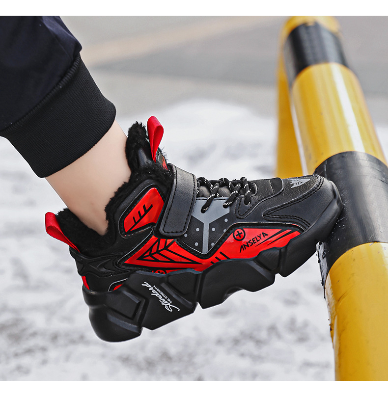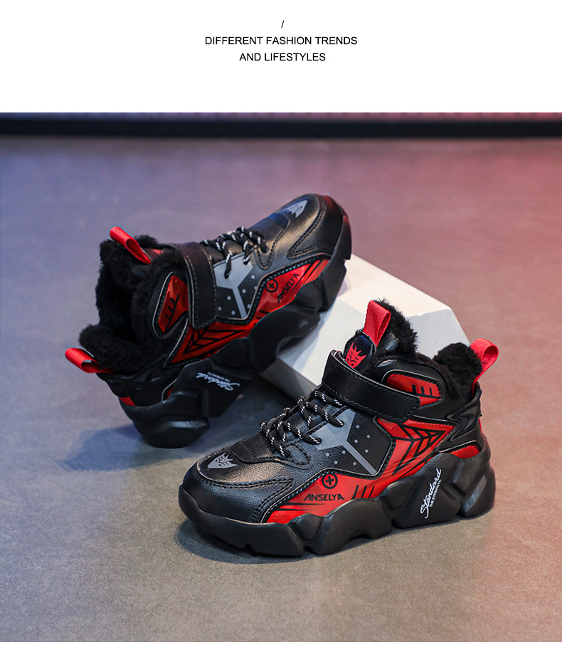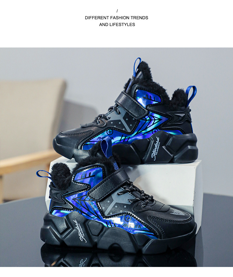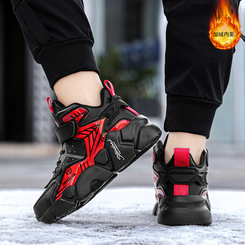 어린이 코튼 신발 큰면 겨울 따뜻한 소년의 미드 톱 운동화 소프트 솔 경량 미끄럼 방지 캐주얼 신발 큰 어린이 신발
