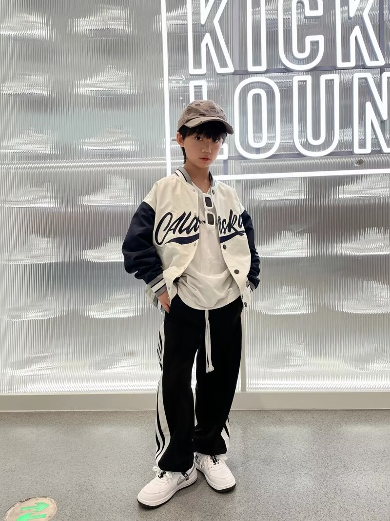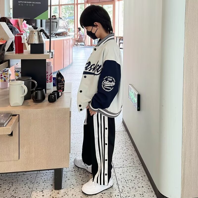 긴바지 하라주쿠 아동복 남아 스포츠 바지 풀버튼 바지 농구 바지 캐주얼 2025년 여름 일반 트렌드