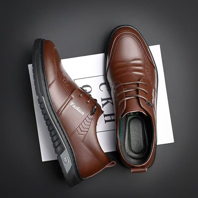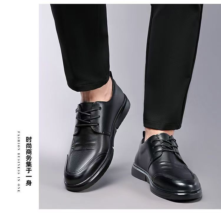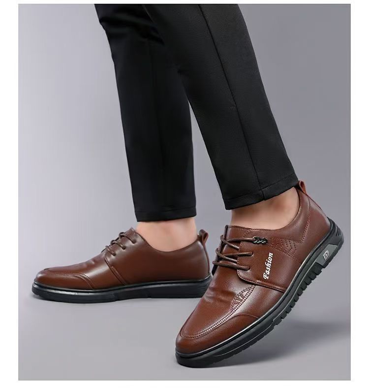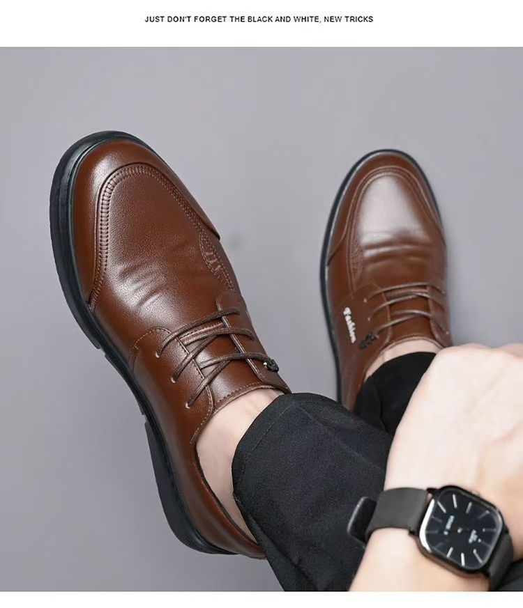 남자 신발 2024 새로운 사계절 올 매치 가죽 신발 남성 비즈니스 캐주얼 신발 소프트 단독 미끄럼 방지 트렌디 올 매치 아빠 신발