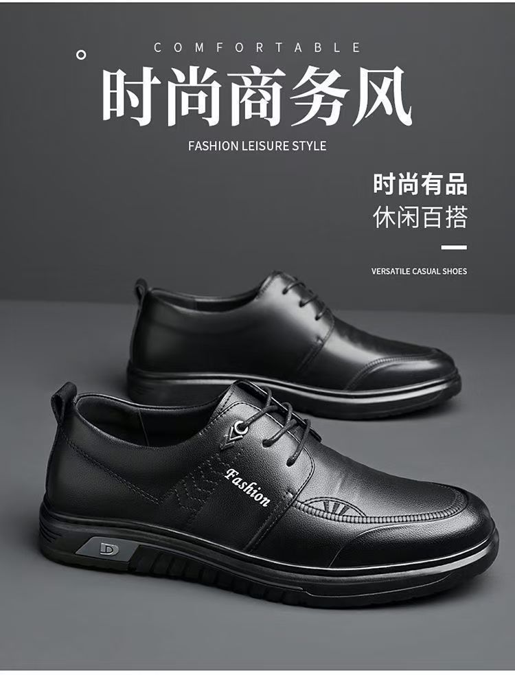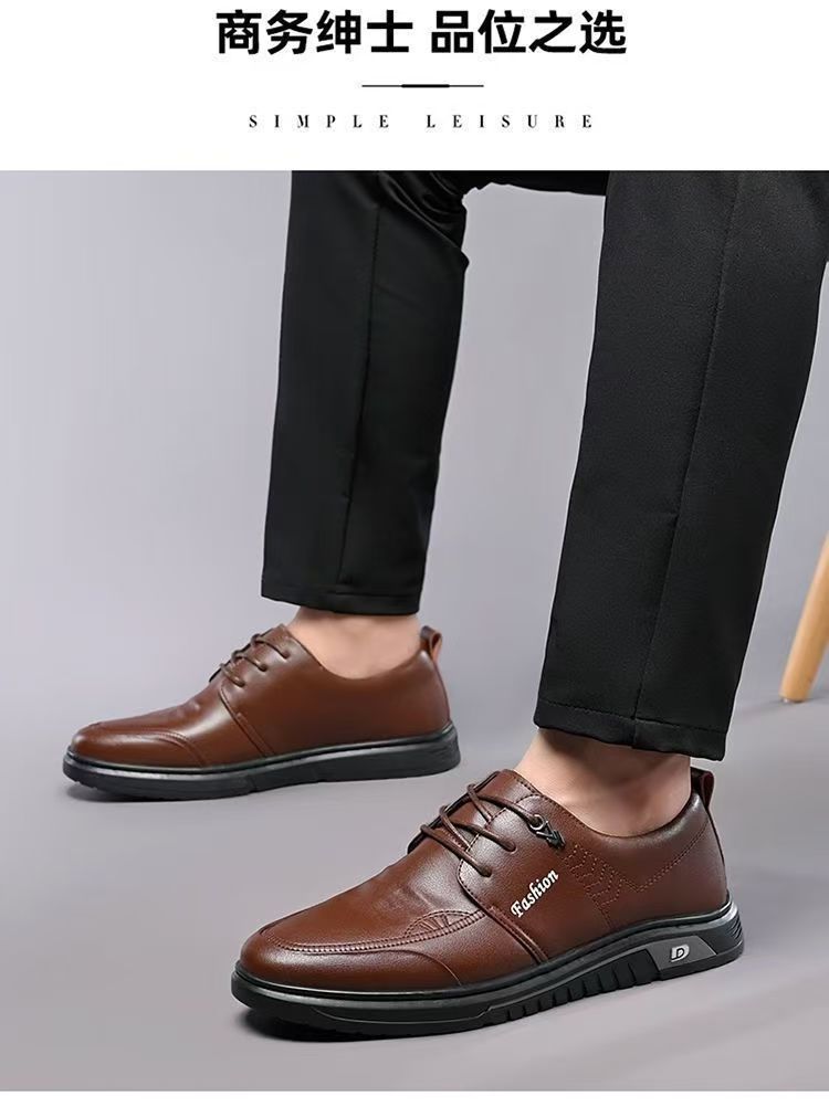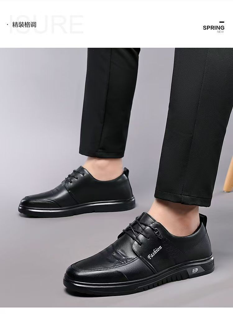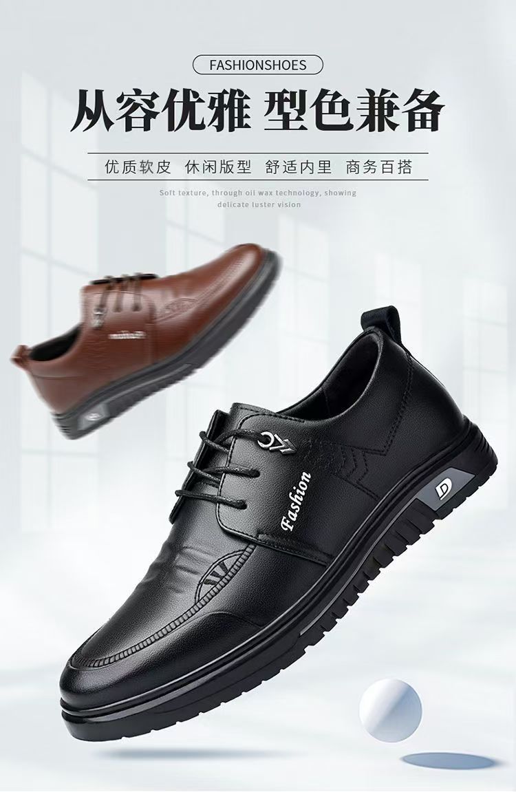 남자 신발 2024 새로운 사계절 올 매치 가죽 신발 남성 비즈니스 캐주얼 신발 소프트 단독 미끄럼 방지 트렌디 올 매치 아빠 신발스토어 가기