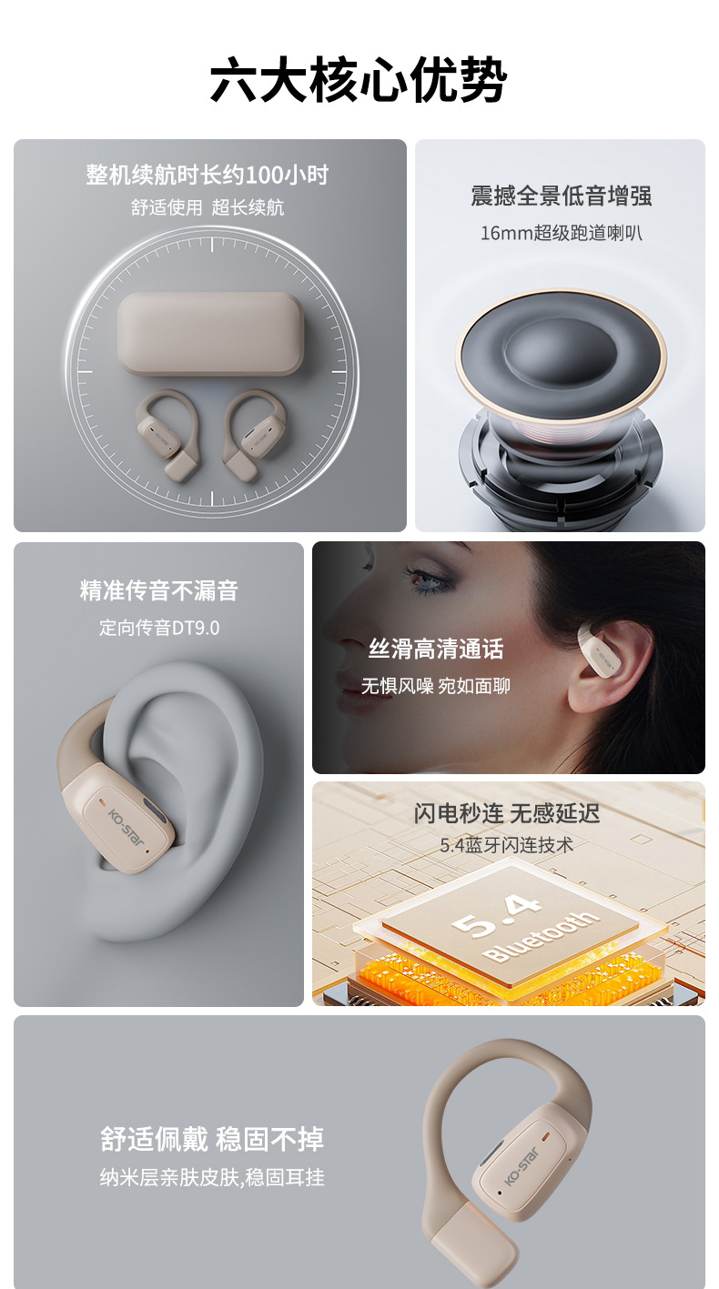OWS 귀걸이형 공기전도 신형 스포츠 무선 빠른 충전, 긴 배터리 수명, 강력한 음질, 블루투스 이어폰, 귀에 들어가지 않아 편안함