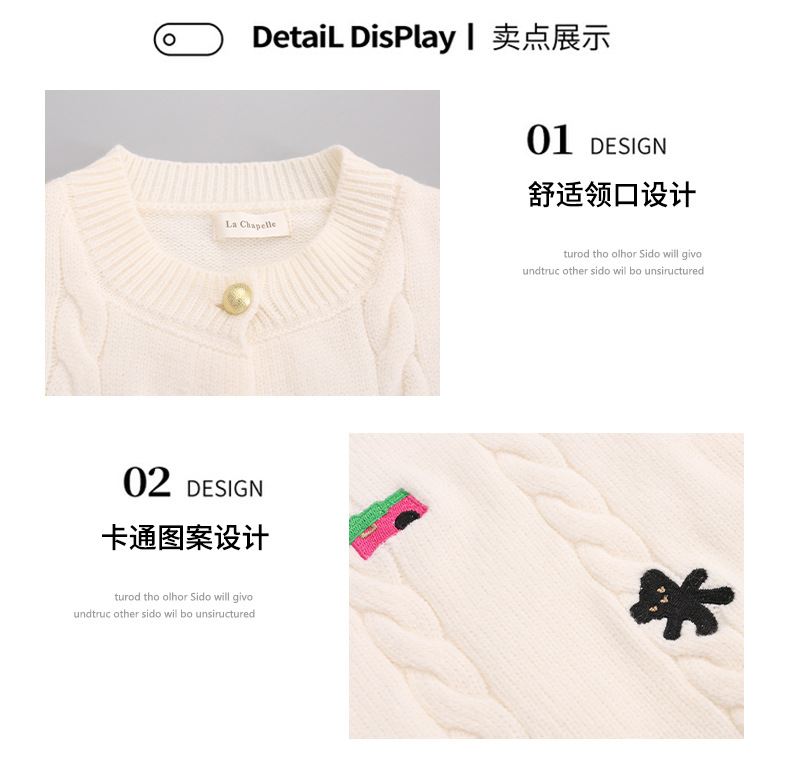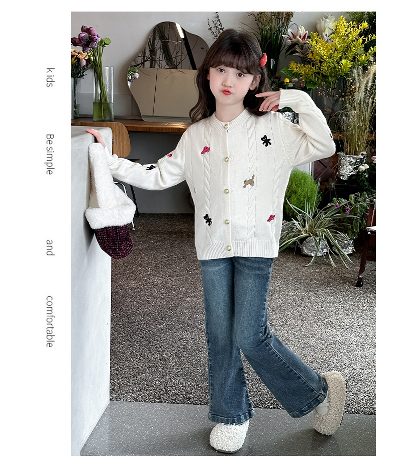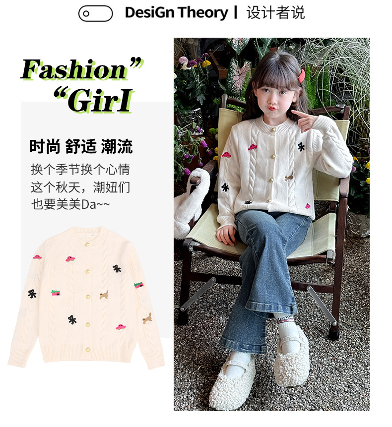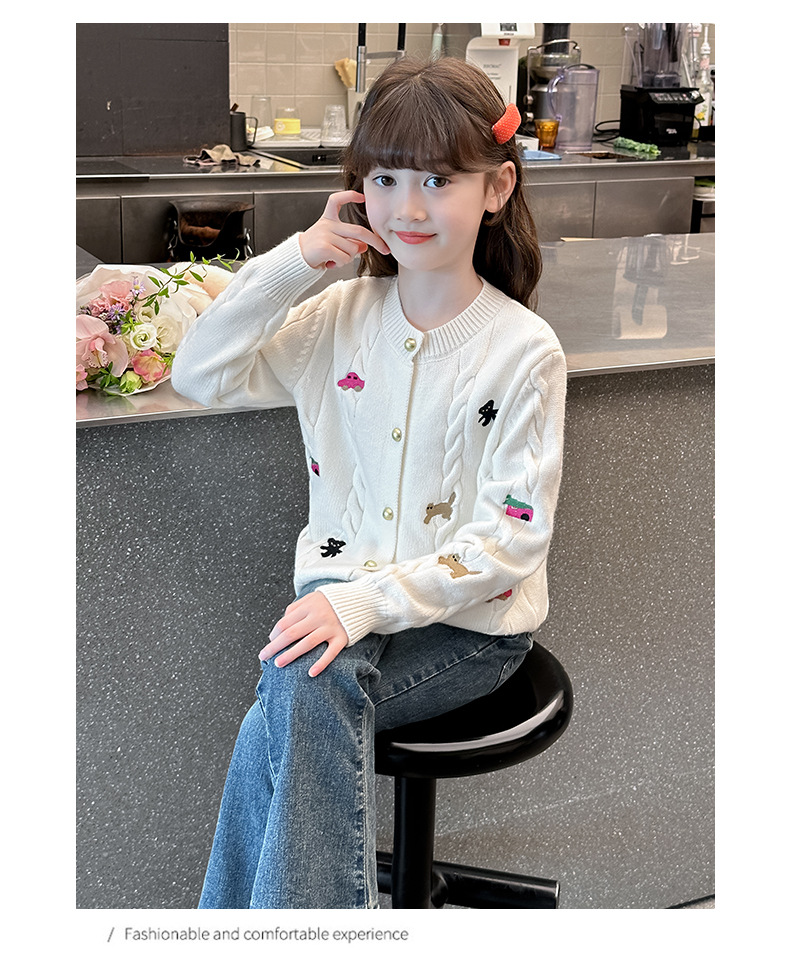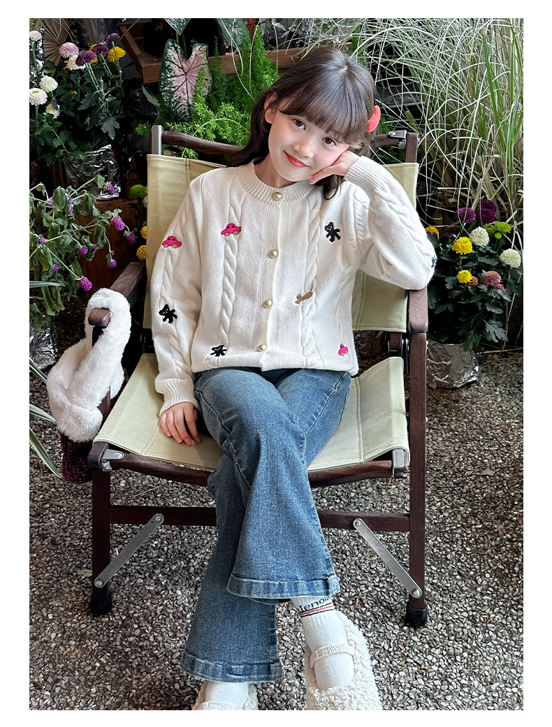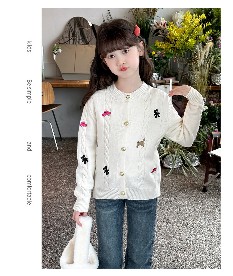 소녀의 봄 자수 코트 2024 새로운 어린이 봄 니트 카디건 봄과 가을 최고의 소녀 어린이 스웨터