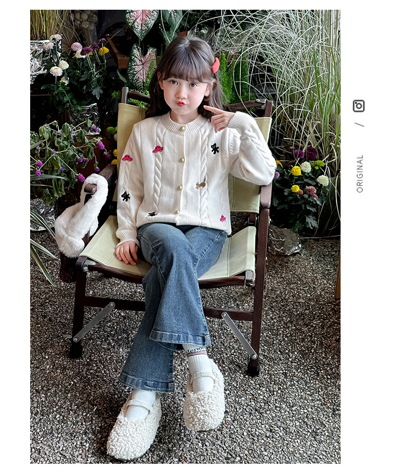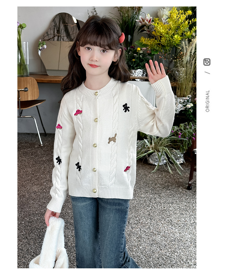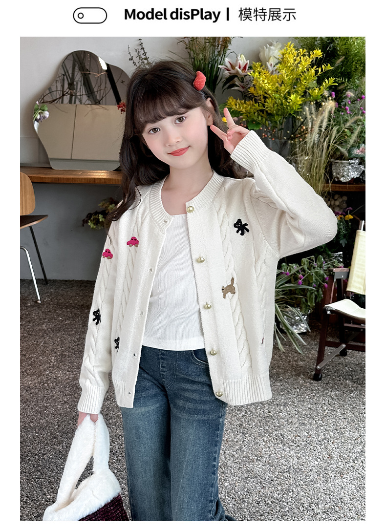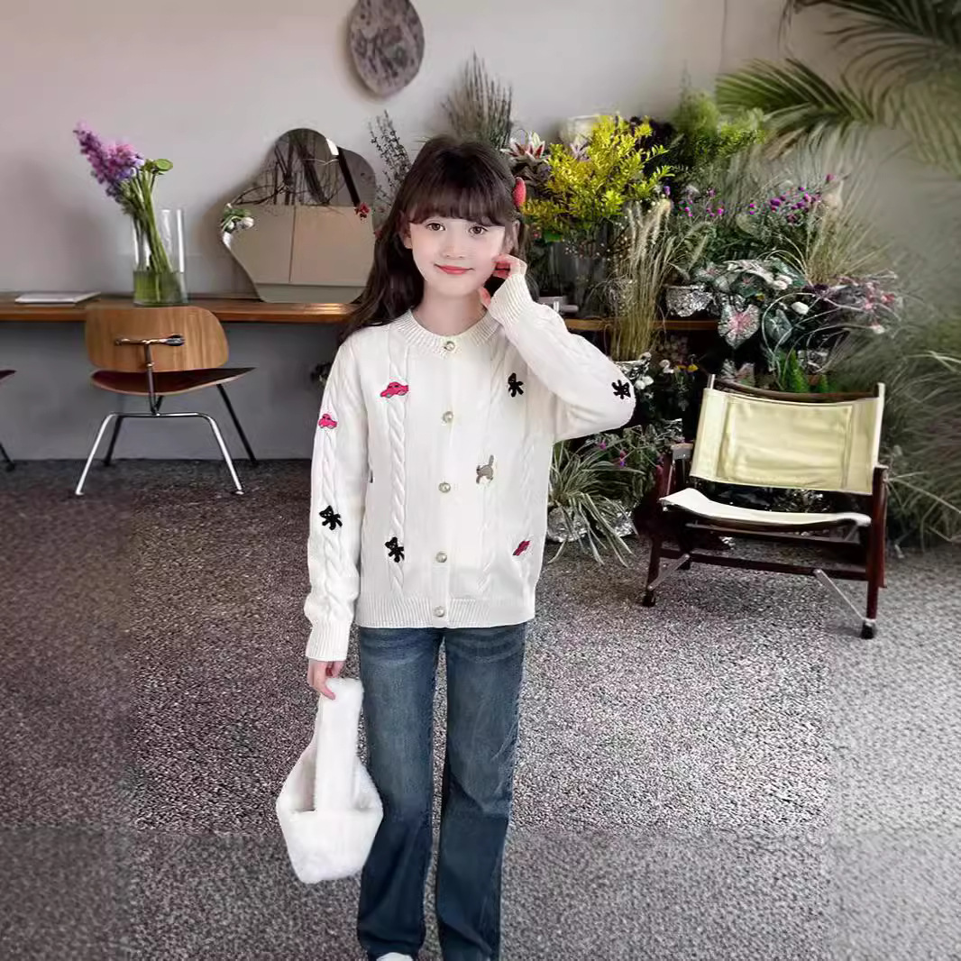 소녀의 봄 자수 코트 2024 새로운 어린이 봄 니트 카디건 봄과 가을 최고의 소녀 어린이 스웨터스토어 가기