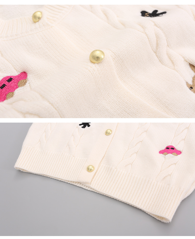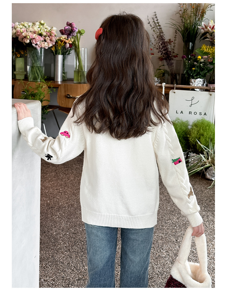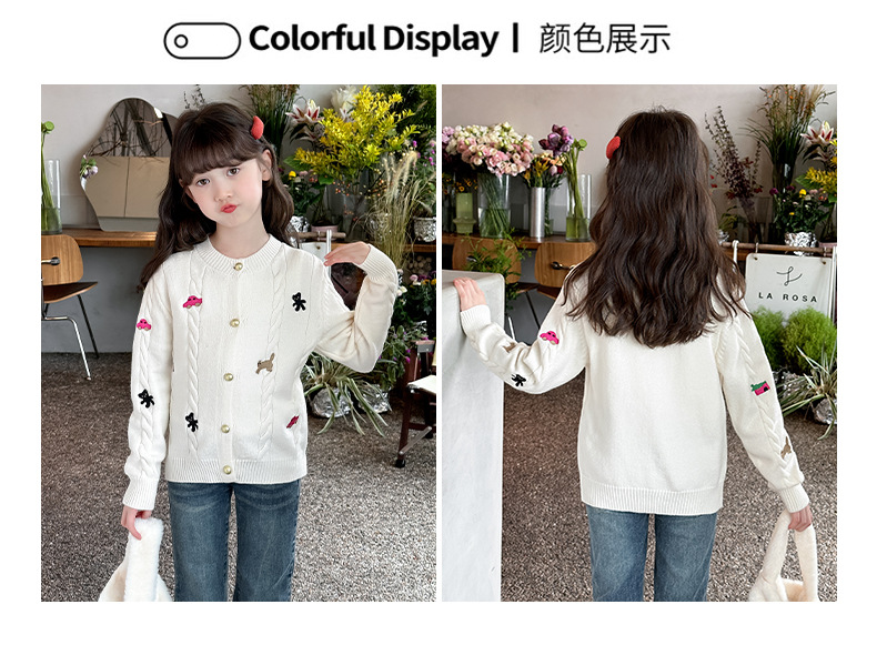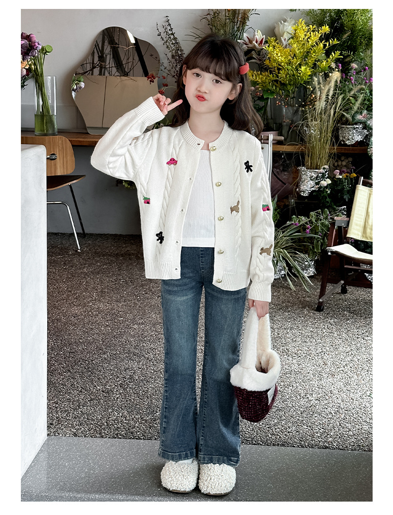 소녀의 봄 자수 코트 2024 새로운 어린이 봄 니트 카디건 봄과 가을 최고의 소녀 어린이 스웨터스토어 가기