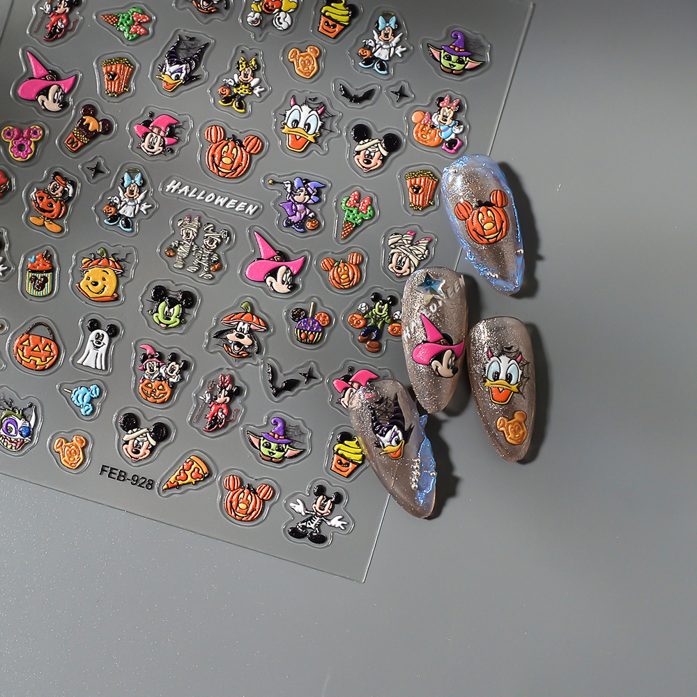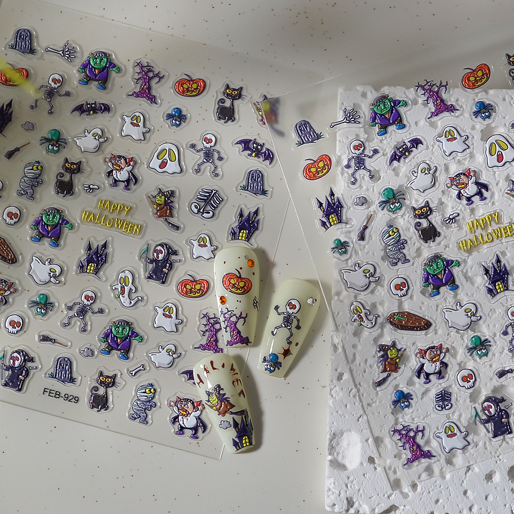 할로윈 호박 네일 아트 스티커 양각 5D 접착 달콤한 멋진 아기 유령 원피스 네일 스티커 블랙 박쥐 문신스토어 가기