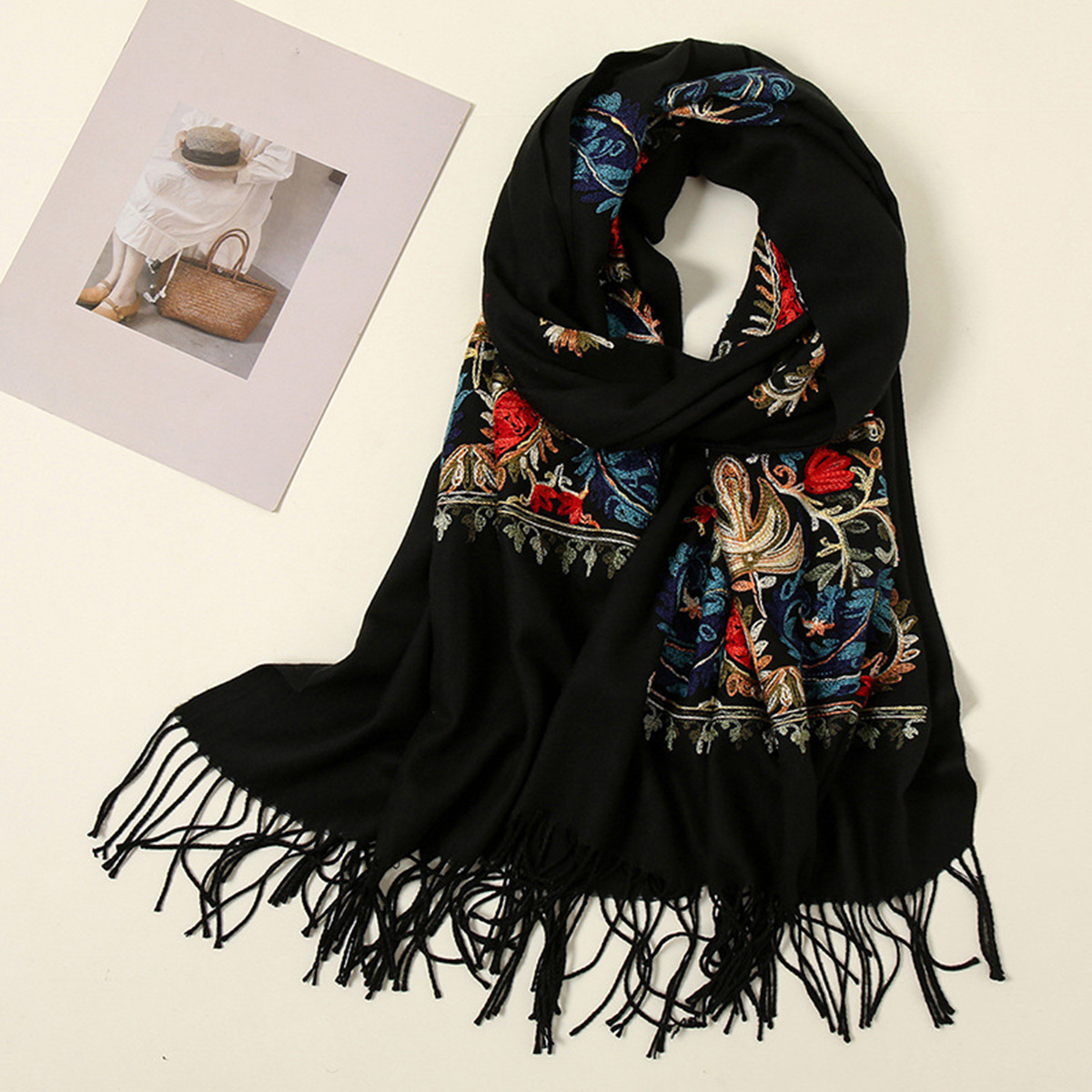 새로운 높은 수준의 풍부한 Xiangyang 캐슈 자수 스카프 모조 캐시미어 숄이 올 매치 단색 스카프 따뜻한 두께