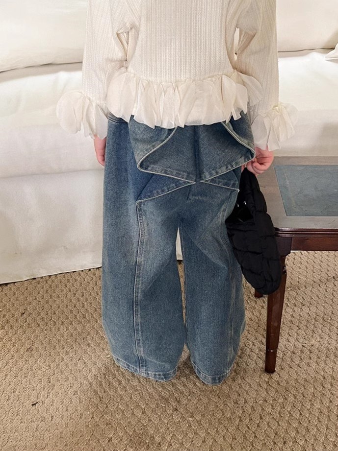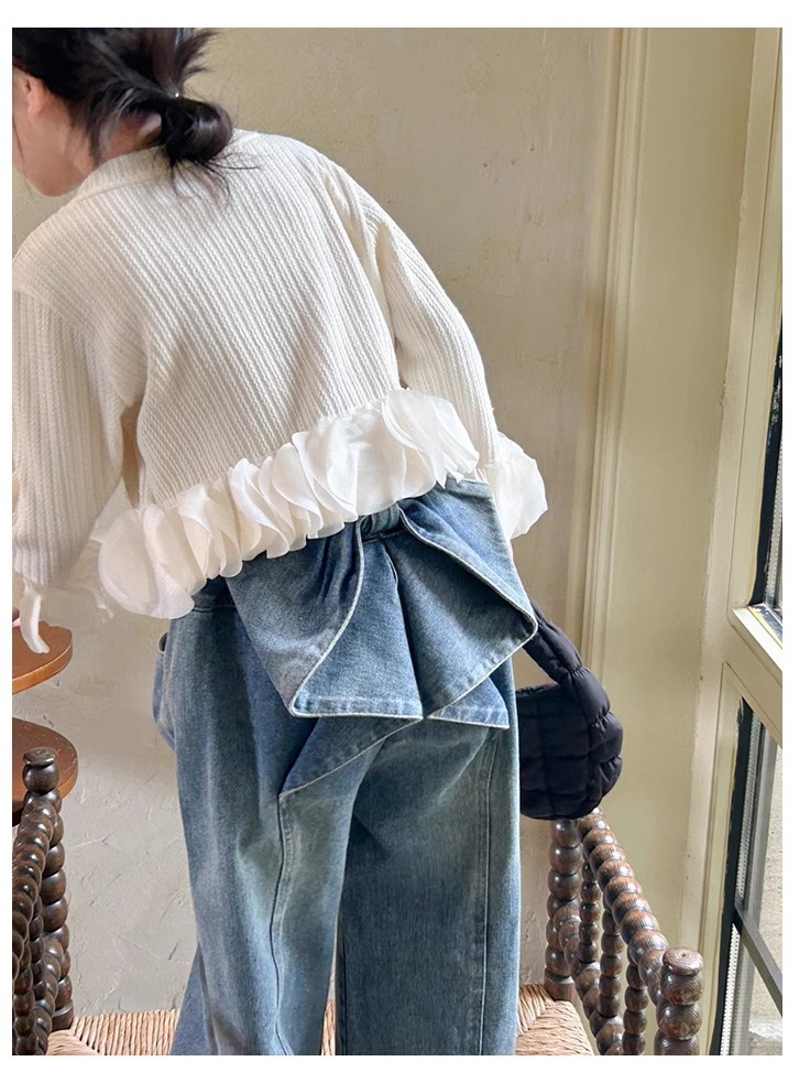 여아 바지 맞춤형 가짜 투피스 청바지 바지 2025 봄, 가을 새로운 대외 무역 아동복 3-10세