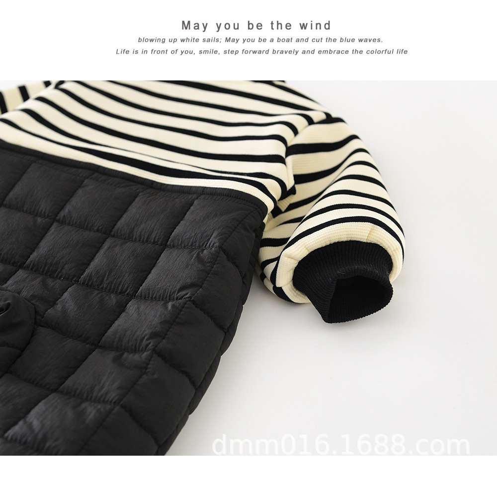 아기 따뜻한 점프 수트 가을과 겨울 아기 줄무늬 패치 워크 기모 등산 착용 어린이 두꺼운 퀼트 면화 들고 옷 95095