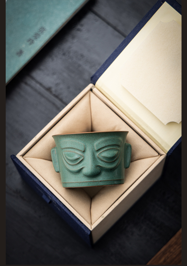 Sanxingdui 마스크 티컵 마스터 컵 차 시음 컵 티 룸 Wenchuang 쿵푸 티 컵 싱글 컵 중국 세라믹 선물 상자