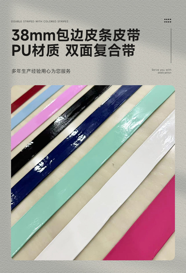 38mm 테두리 가죽 벨트 컬러 PU 소재 양면 복합 숄더백 핸드백 애완 동물 가죽 끈 제조 업체
