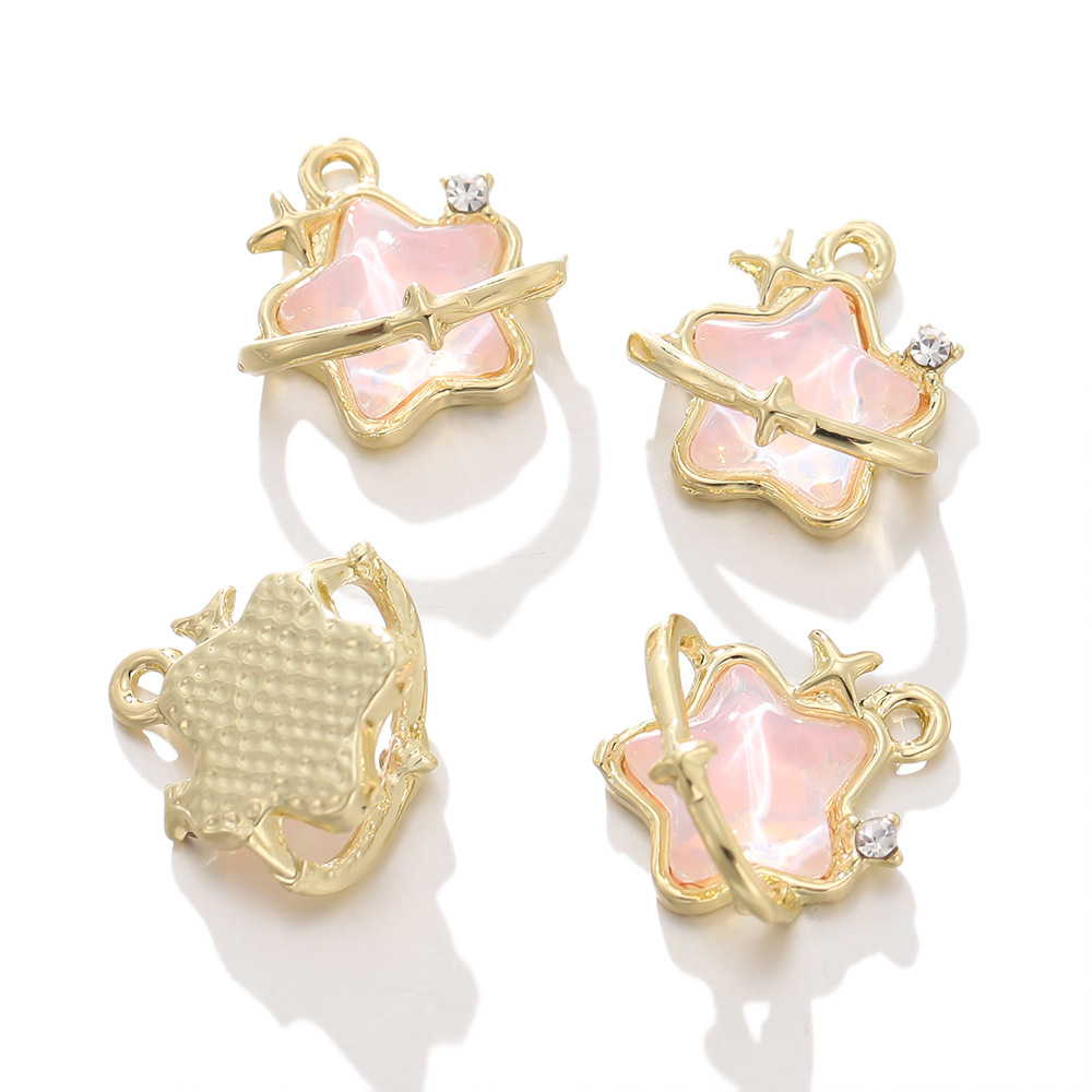 새로운 다섯개 별 합금 포인트 드릴 문 다이아몬드 펜던트 UV 도금 펜던트 diy 팔찌 목걸이 매달려 도금 액세서리